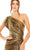 Embrace a sparkling style with this masterpiece by Leena Duggal 27075. This mesmerizing dress, tailored from metallic jersey fabric, exudes sophistication and glamour. The one-shoulder design is accentuated by a delicate flutter sleeve, adding a touch of elegance. The ruched waist detail enhances your curves, while the back zipper closure ensures a seamless fit. The knee-length skirt flows gracefully, featuring an asymmetrical high-low hem that adds a playful and dynamic element to the overall look. Radiate confidence in this exquisite Leena Duggal 27075 creation. Model is wearing Antique Gold color.