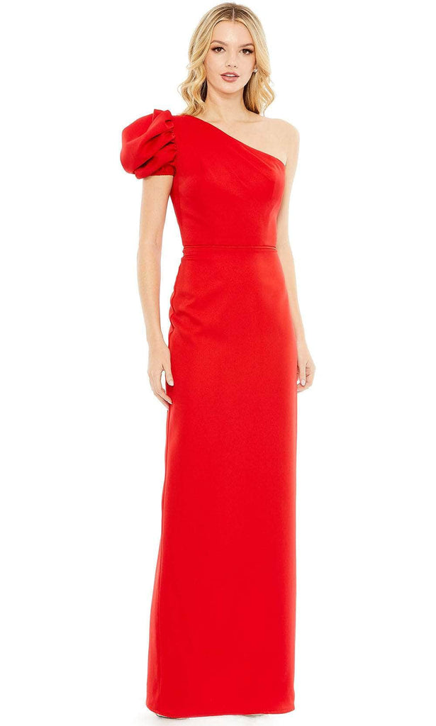 Unleash your inner fashion icon with the Ieena Duggal 49630 dress. Crafted from luxurious crepe fabric, this dress exudes timeless elegance. The asymmetrical neckline adds a modern twist, while the single ruffled cap sleeve adds a touch of whimsy. With a back zipper closure, the dress ensures a seamless fit. The back vent allows for easy movement and adds a hint of allure. The full-length skirt, parading in a sheath silhouette, accentuates your curves with effortless grace. Make a memorable entrance in this Ieena Duggal 49630 masterpiece. Model is wearing Red color.