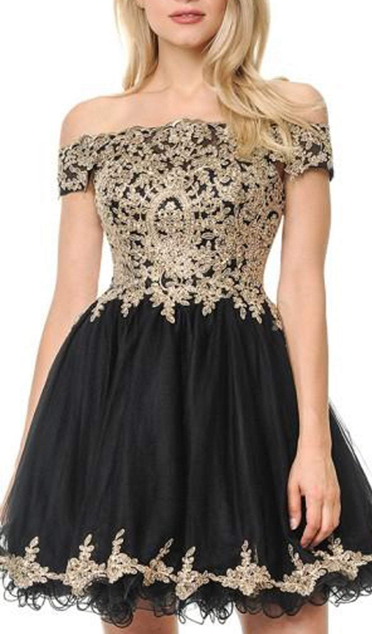 | Details: | Strapless, Gold Appliques, Rhinestones, Mid-Open Back, Back Zipper Closure, Tulle, Lace Border, Bra Cup, Fully Lined, Rolled Short Hem |