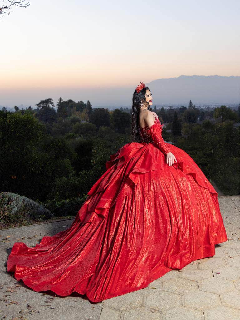 Be the epitome of sophistication and style with Lizluo Quince 26097, a captivating ensemble tailored from Crystal AB Beaded/Lame Satin. The timeless sweetheart neckline shimmers with intricate details, setting a tone of sophistication. Detachable long sleeves crafted from sheer fabric feature feather detailing, perfectly complementing the dress's color. The full, box-pleated ball gown exudes majesty and glamour. A beautifully draped back bow adds a final flourish to this unforgettable Lizluo Quince 26097, ensuring you make a statement on your special occasion. Models are wearing Black, Green Peacock, and Red colors.