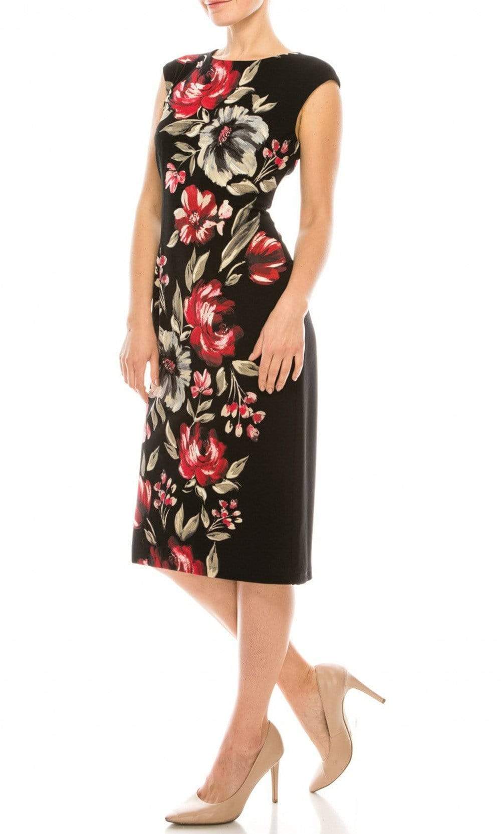 Display your elegant feminine sense of style in this stunning London Times T5088M dress. Sophisticated in knee-length crepe fabric with bold painted floral print showcasing a bateau neckline with cap sleeves tailored in a classy sheath silhouette. This London Times dress is perfect for any social gathering.