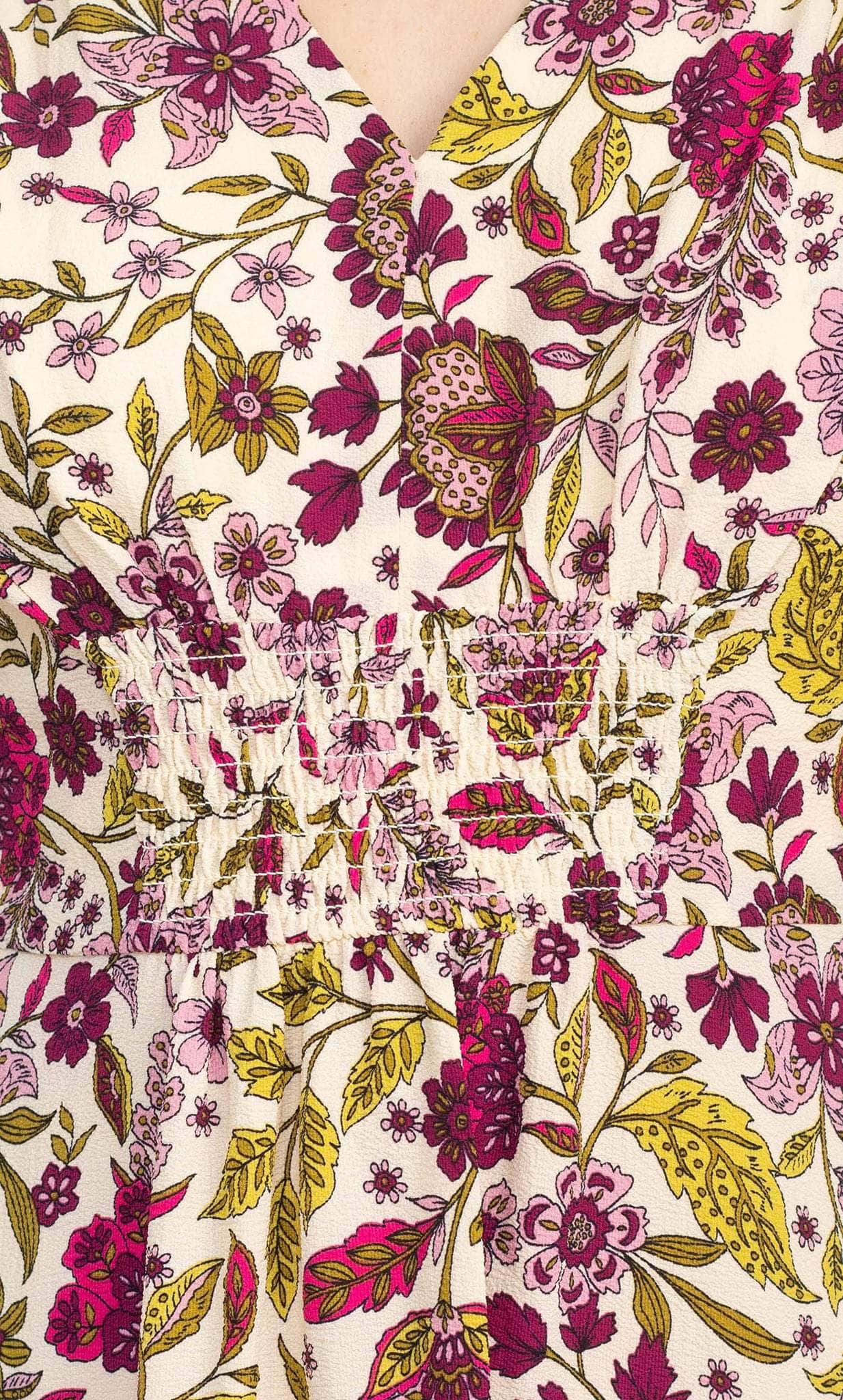 | Details: | Ruffle Cap Sleeves, Floral, Ruched Waist, Back Zipper |