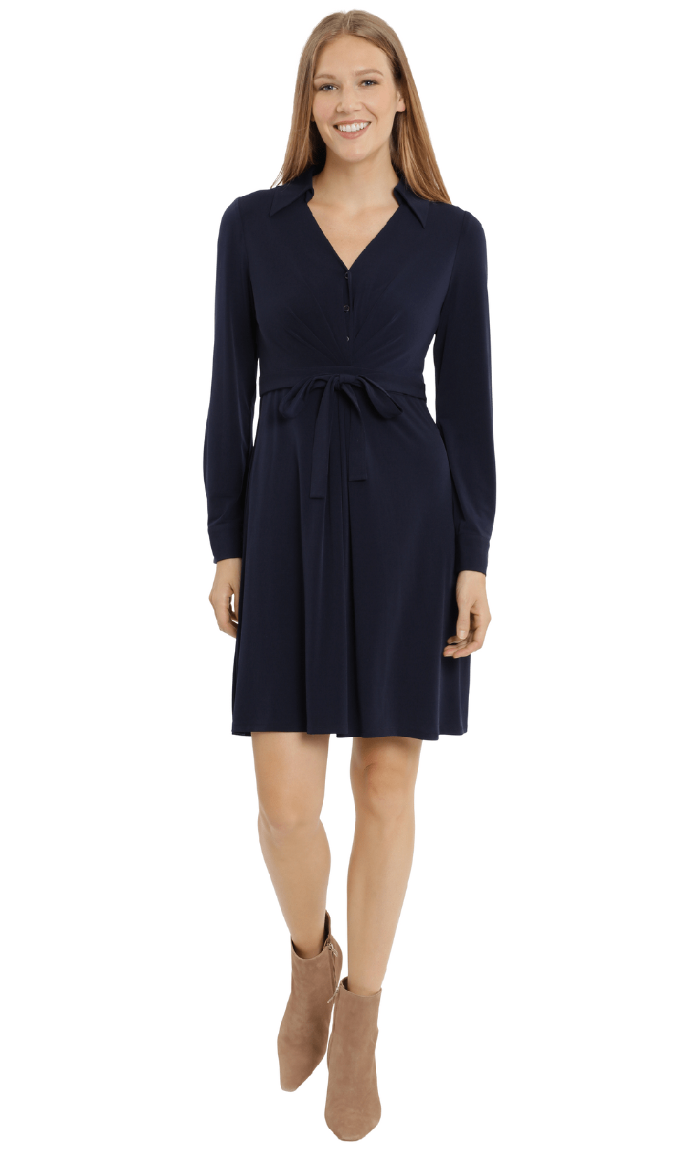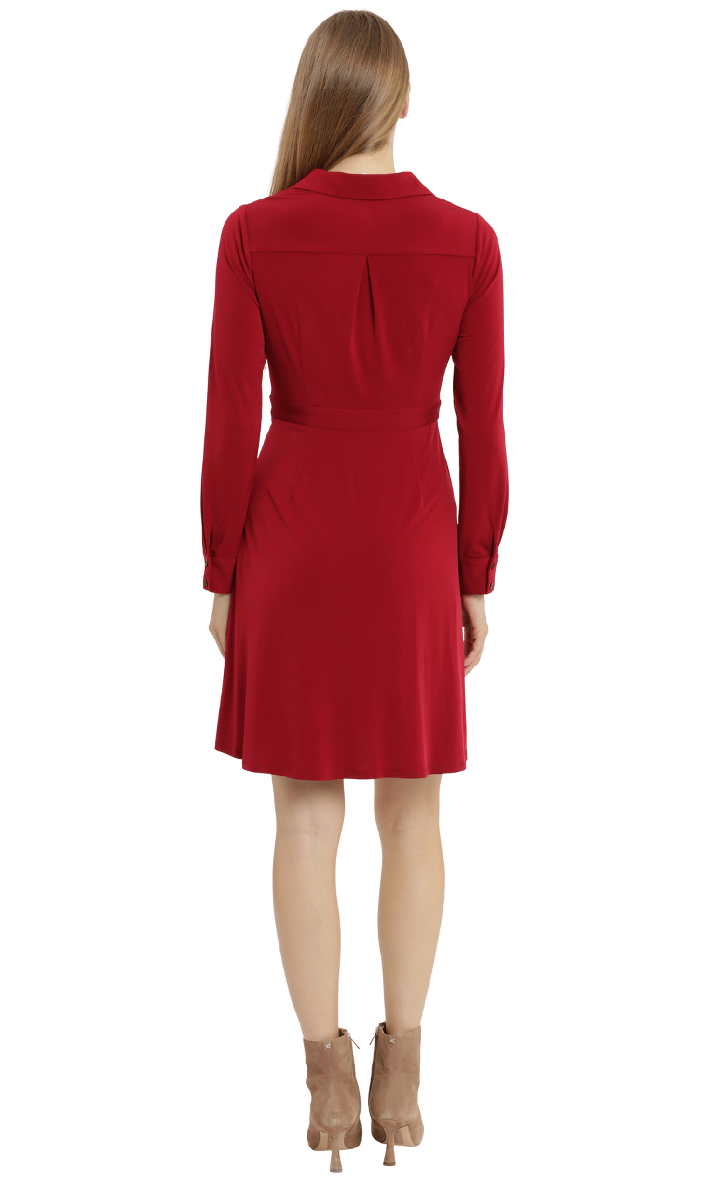| Details: | Long Sleeve, Collared Neckline, Front Button, Tie Waist, Pleated, Full Back |