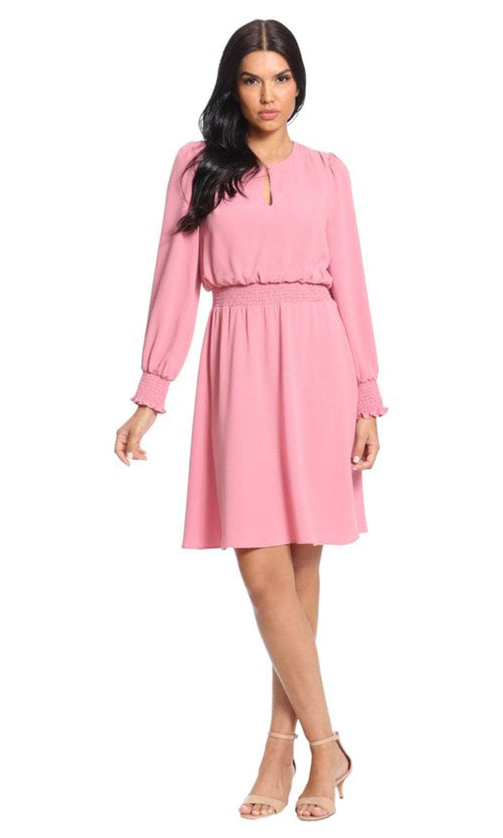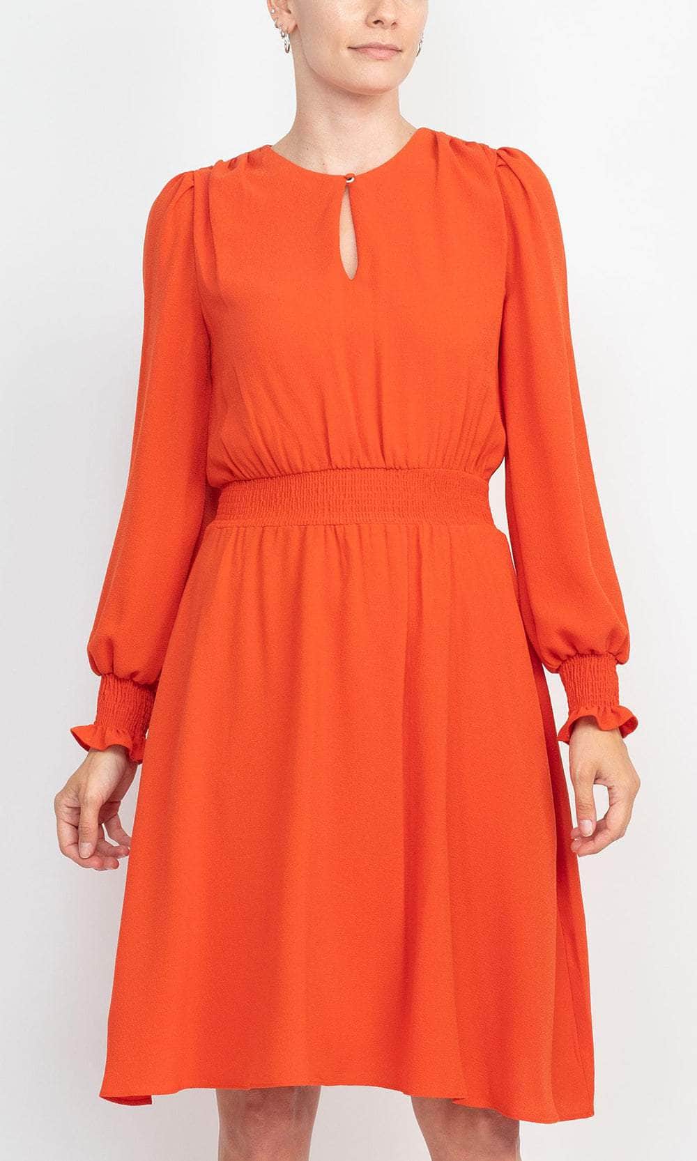Details: Keyhole, Long Sleeves, Elastic Waist, Knee Length Hem