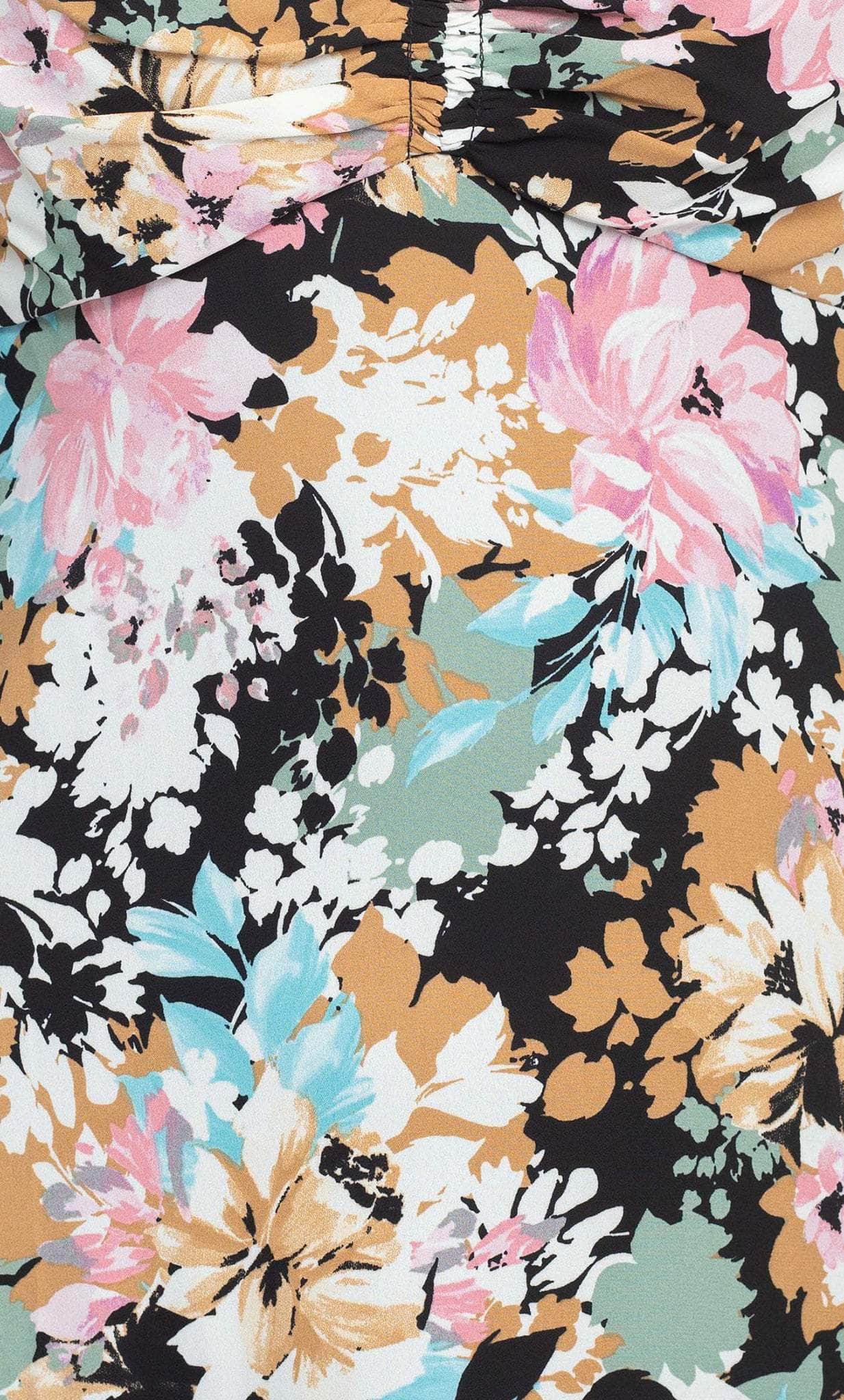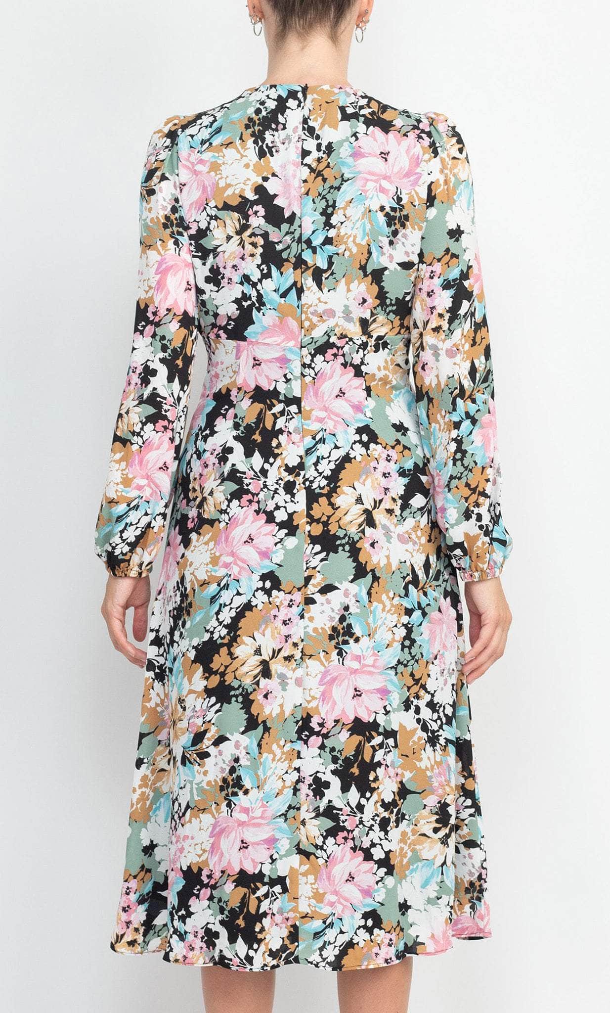 Details: Floral, Printed, High waist, Multicolor, Midi dress, Back zipper, Long sleeves
