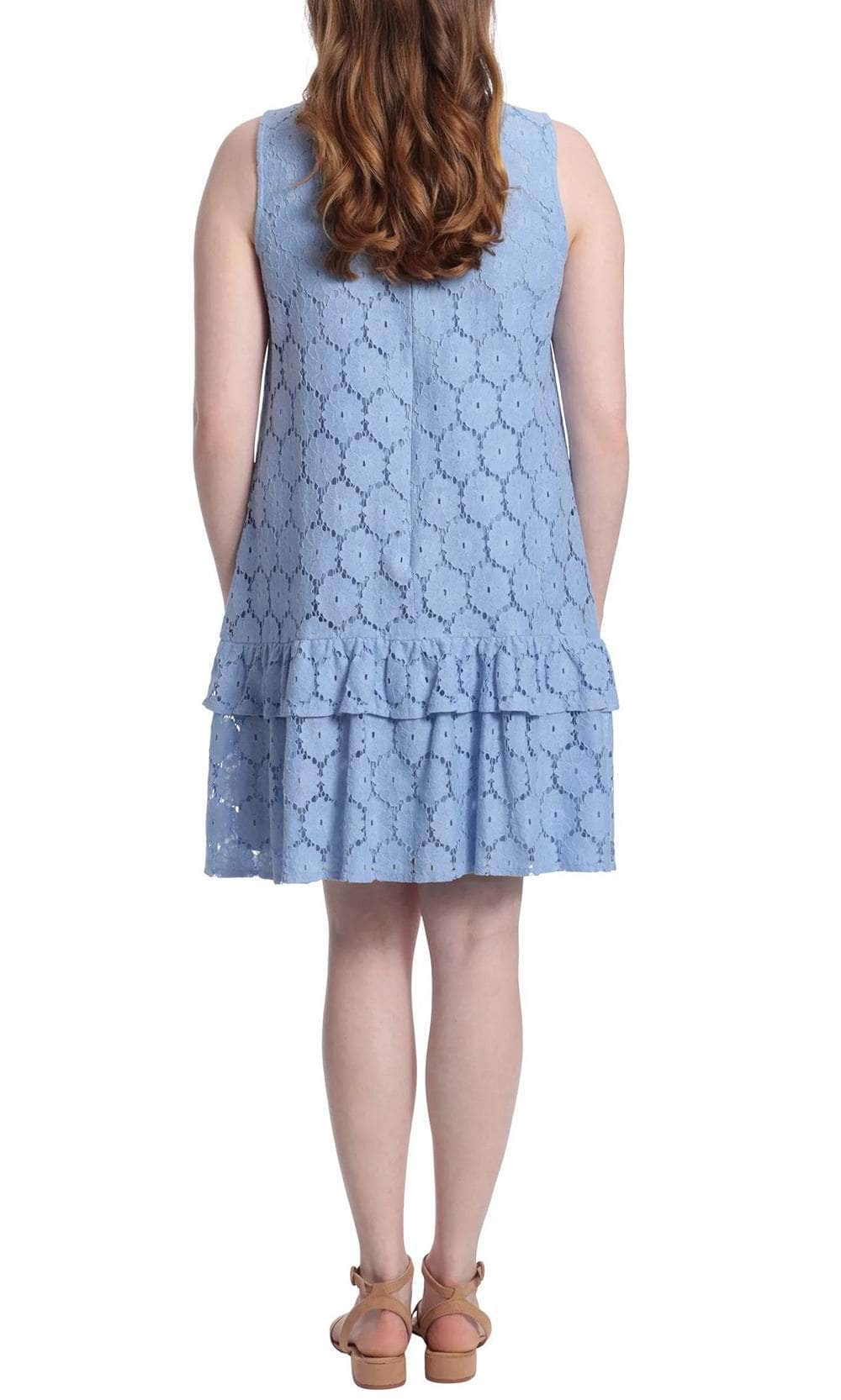 Look exquisite in this incomparable London Times T6137M. Have a charming moment in this gorgeous lace dress. This fabulous winning piece flaunts a scoop neckline with a sleeveless bodice that is perfect for any formal occasion. The back is fully enclosed and secured with a concealed zipper. The skirt has a sheath shape and flares beautifully to a short-length hemline. Be the ultimate belle of the party in this gorgeous dress from London Times T6137M. Model is wearing Blue color.