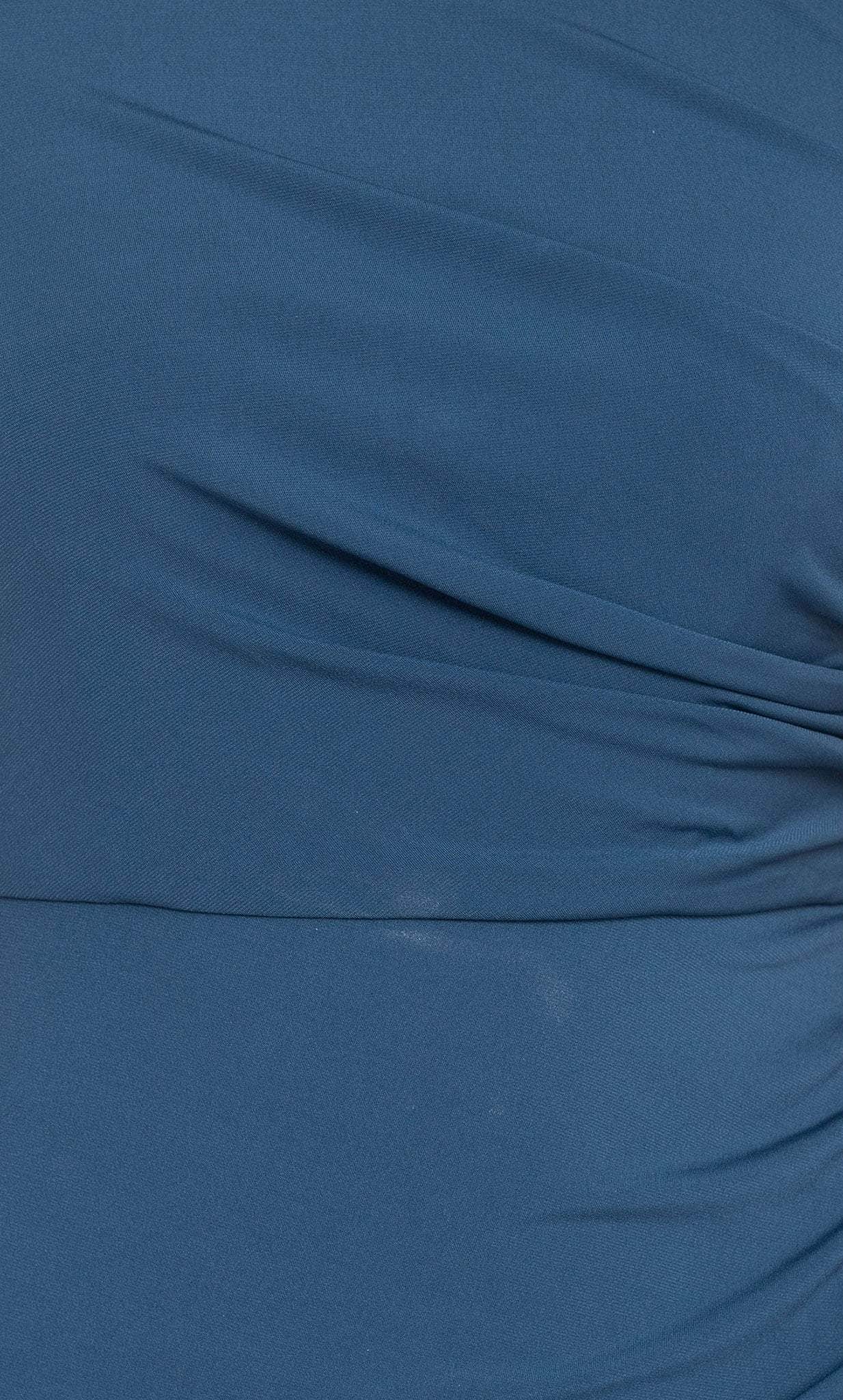 Beam with pride when you wear this radiant dress from Immediate Apparel T6314M. Flaunts a unique asymmetrical neckline on a sleeveless but two-strapped dress. It is fitting and hugging the body of the wearer having ruched design on its side. Skirt finishes in an asymmetrical manner with its faux wrap style. Closes with a back zipper fastening and parades sheath silhouette. Immediate Apparel T6314M is your excellent choice for prom or for any special occasion when you dare to look extraordinarily fabulous! Model is wearing Denim color.