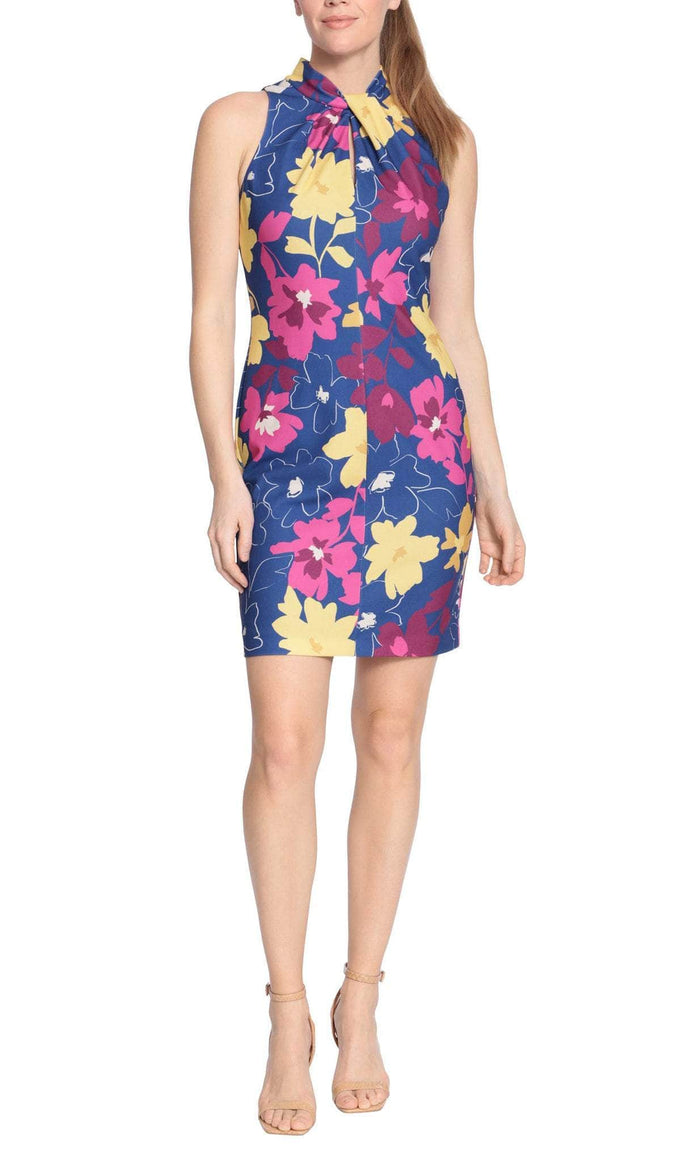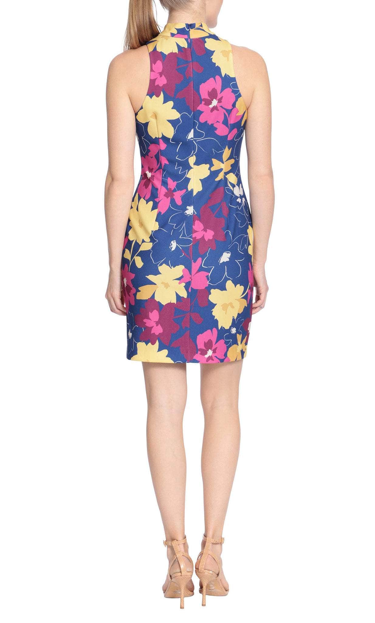 Wear this magnificent London Times T6321M masterpiece and look classy and sophisticated. This floral printed dress crafted with clean seams showcases a sleeveless fitted bodice framing the halter neckline. The keyhole detail brings an elegant touch to this winning piece. The back is secured with a center zipper closure and the short-length skirt reveals a sheath silhouette. You'll mesmerize the crowd and leave them speechless in this London Times T6321M creation. Model is wearing Blue Magenta color.