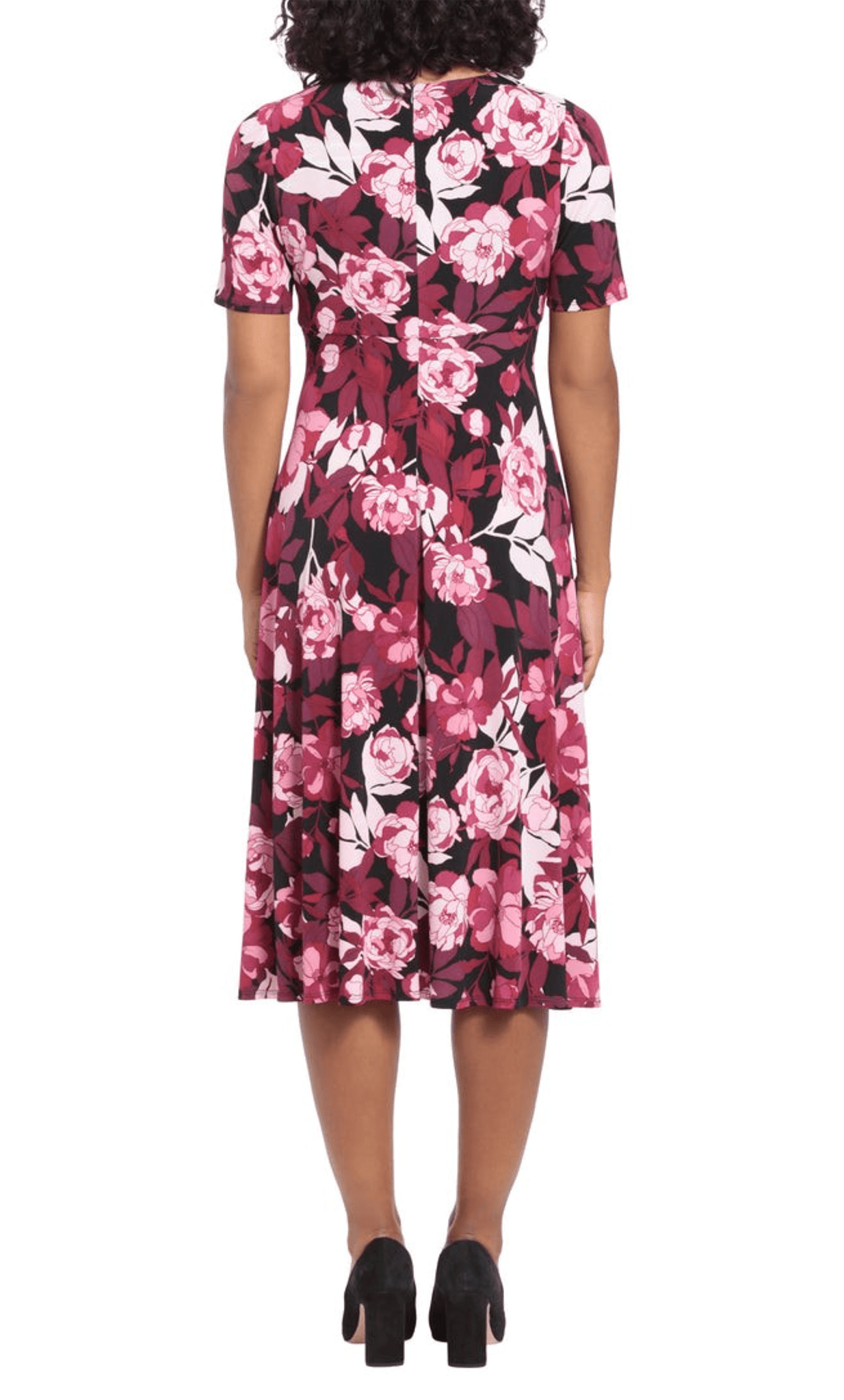 CoLook fresh and pretty in this London Times T6564M creation. This elegant dress features a beautiful floral print on a comfortable jersey fabric, perfect for any occasion. The half-length sleeves and enclosed back provide a classic and modest look, while the keyhole front adds a touch of glamour. The pleated skirt flows gracefully and complements the natural A-line shape of the dress. The scoop neckline adds a flattering touch to the overall look. Be fabulous in London Times T6564M! Model is wearing Black Dusty Pink color.