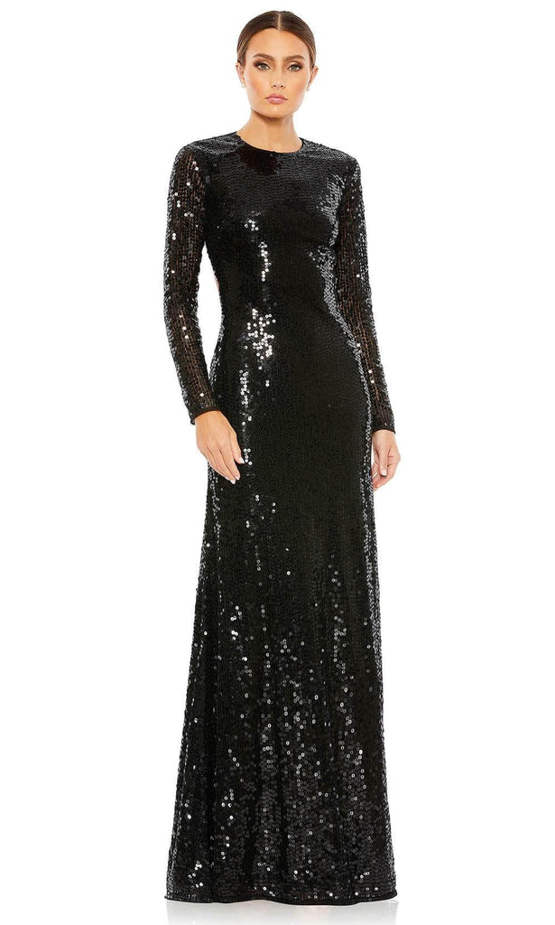 Indulge in appreciative glances when you flaunt a decadent style in this design from Mac Duggal 10891. This gown features a jewel neckline with long sleeves and an elaborate spectacle of sequins. The bodice is defined by side cutouts and a sensual open-back to show off your curves and sexiness. For your comfort, the full-length skirt has a full-length hem and is lined throughout. This Mac Duggal dress breathes verve and sophistication into your fabulous event! Model is wearing Fuchsia, and Black colors. Find more Black Prom Dresses.