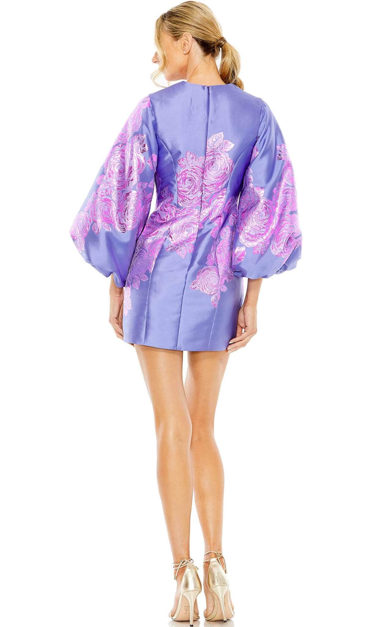 Make yourself into a vision of beauty in this spectacular cocktail dress by Mac Duggal 11610. Attractively contoured with princess seams on a floral brocade fabric, this look highlights your hourglass shape. It has a jewel neckline, long puff sleeves, and a concealed zipper at the center back. The column skirt skims into a short length hemline. This Mac Duggal 11610 style will absolutely make you feel special! Model is wearing the Plum Multi color.