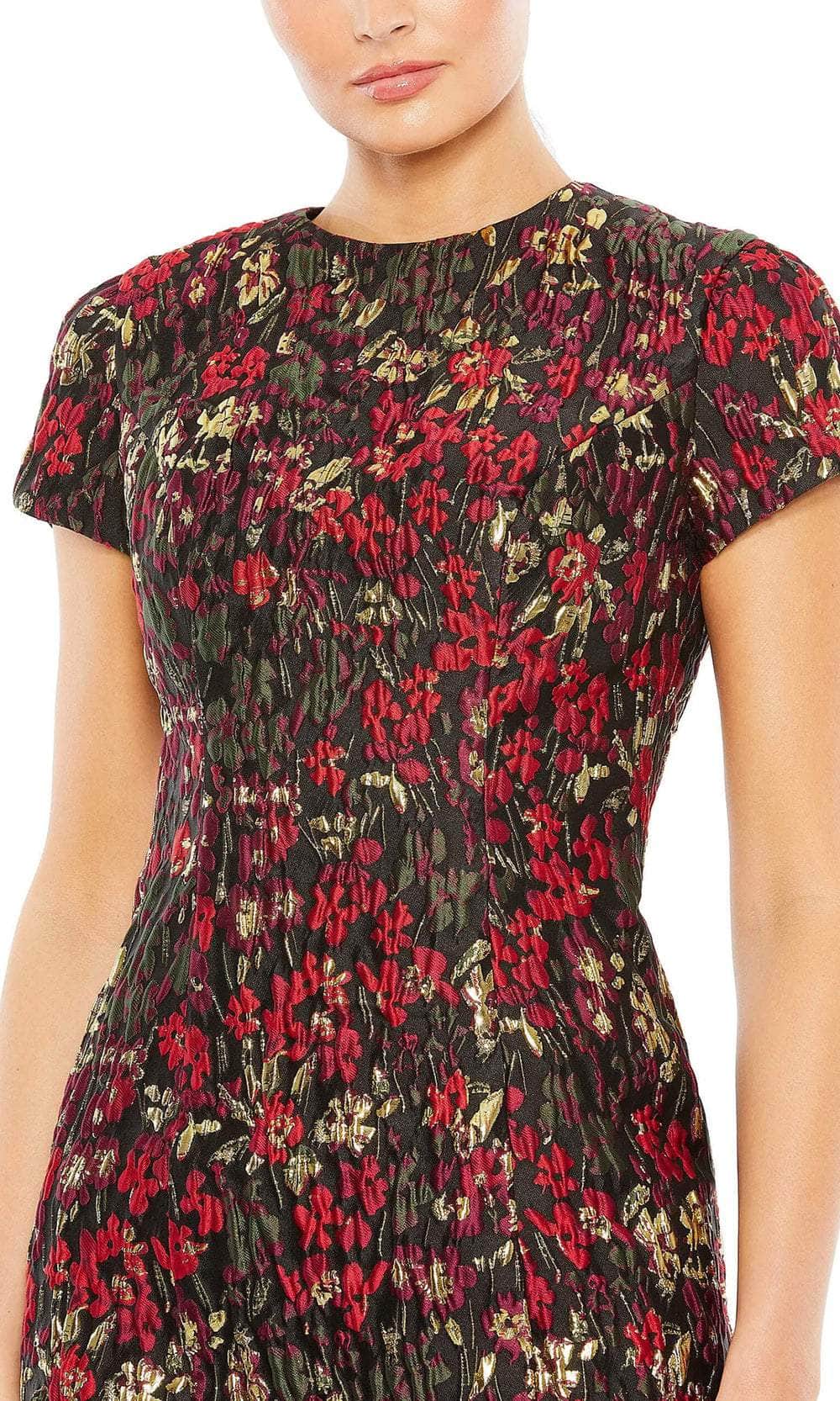 Breeze through your special day while making a stylish statement in this Mac Duggal 11613. This dress showcases a jewel neckline on a fitted bodice. This brocade dress has floral print designs all over. The back shows a full back which is secured by a back zipper. Additionally, its sheath-silhouette skirt is evident until its mid-thigh. Everyone will fall for you when you wear this classy Mac Duggal 11613 creation. Model is wearing Black Multi color.
