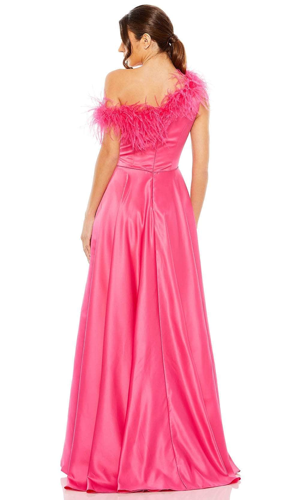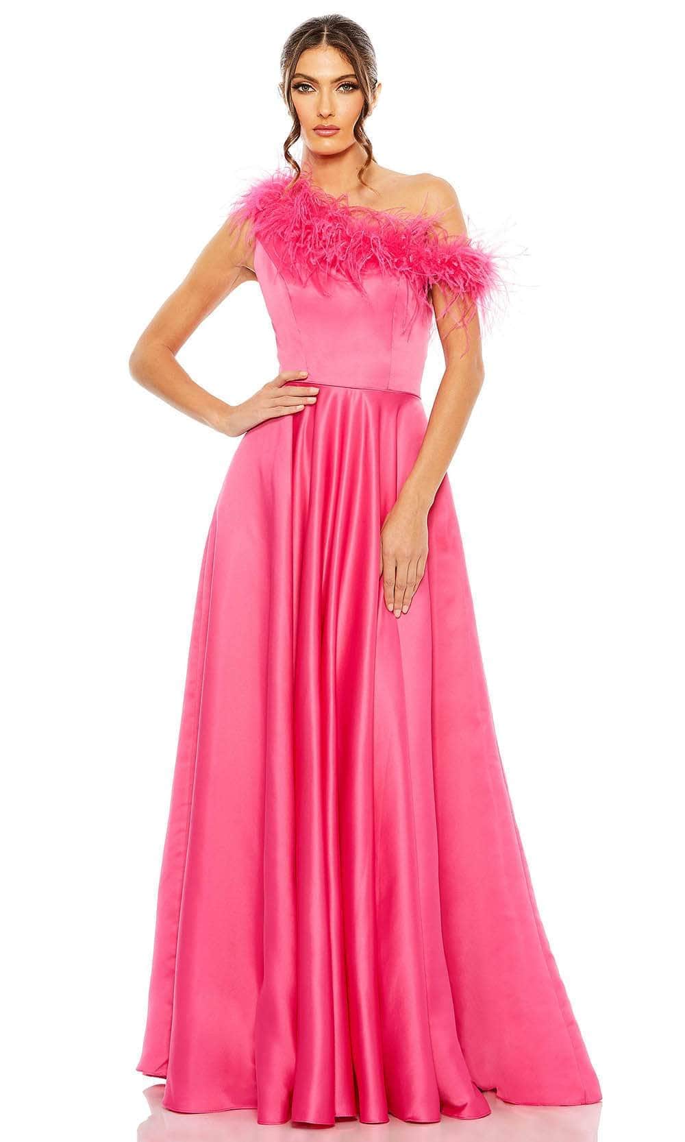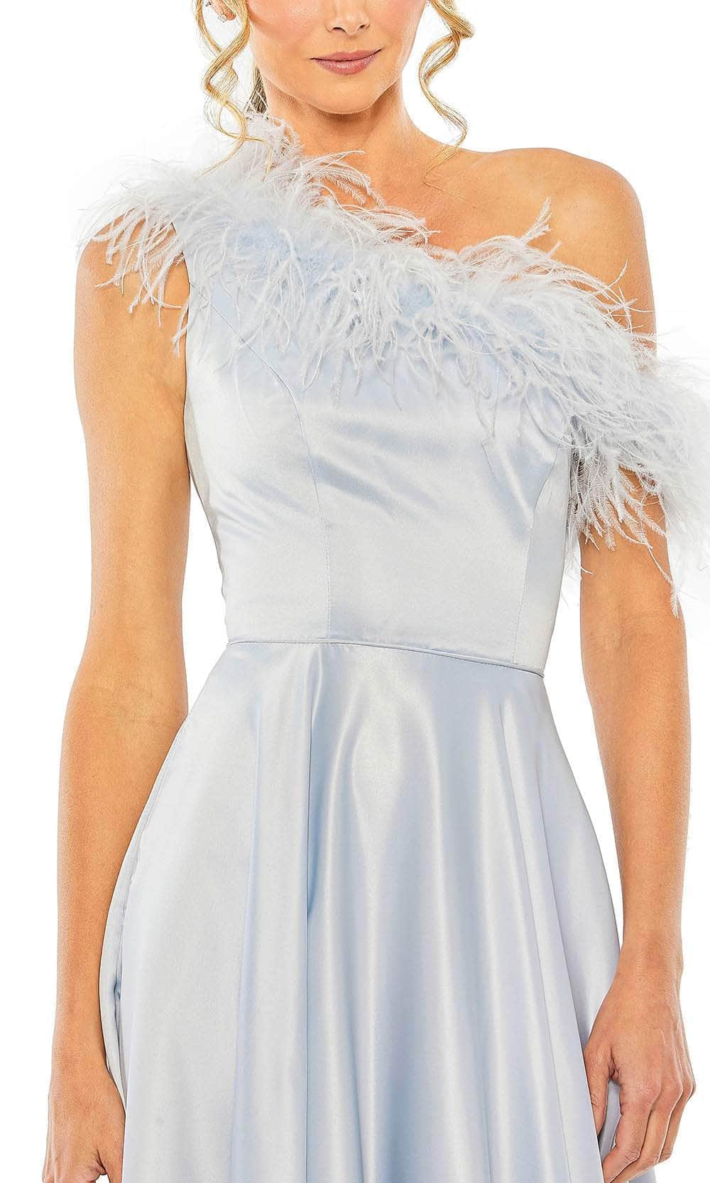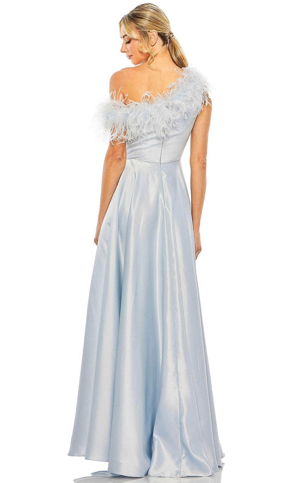 Flow captivatingly through the night in majestic iridescence when you flaunt this Mac Duggal 11684 creation. Stylishly tailored in a luminous satin silhouette, this inspired piece reveals an asymmetrical neckline designed with feather details navigating to a partial open back. Nipped at the waist while showcasing a flowy silhouette, this stunner crafts an A-line design that beautifully drapes to the floor. Engage the crowd while glowing with style in this romantic Mac Duggal 11684 masterpiece. Models are wearing the Hot Pink and Powder Blue colors.