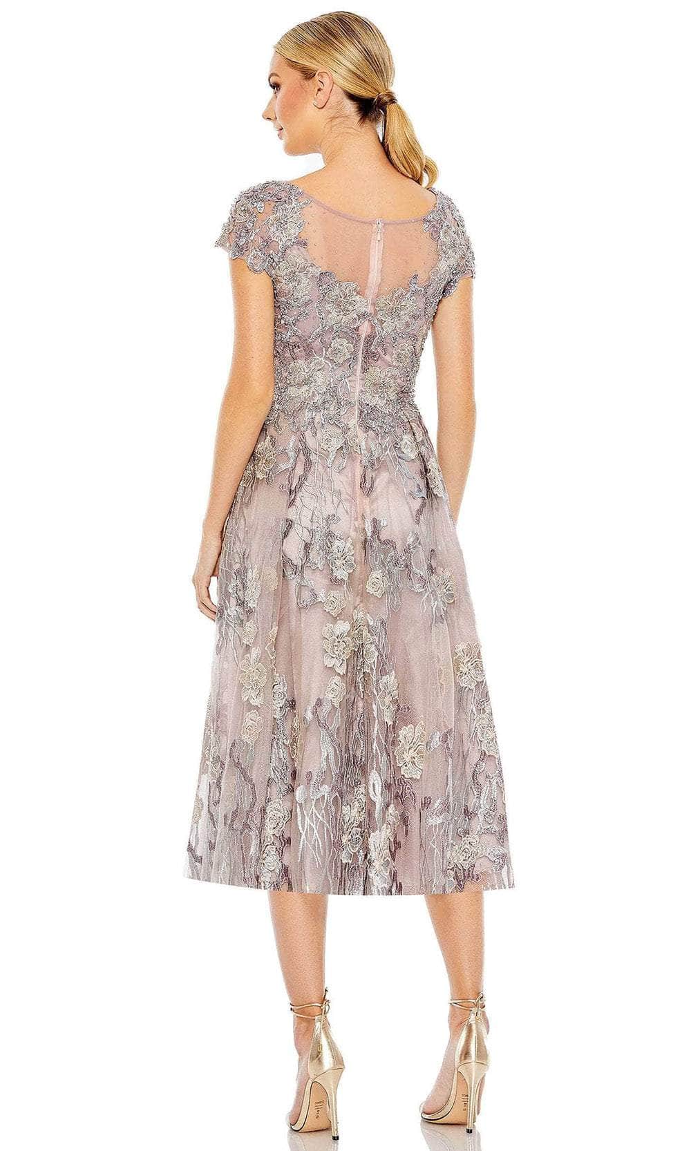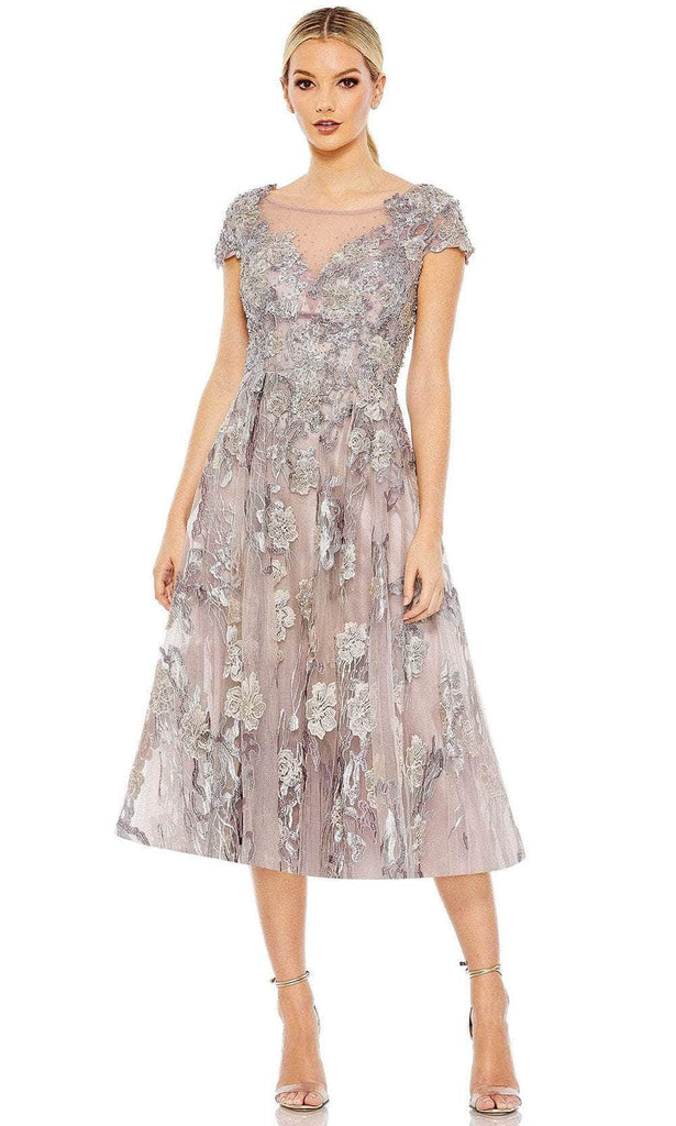 Exude a charm that is meant to mesmerize the elite crowd in this gorgeously decadent Mac Duggal 20315 cocktail dress. Embellished with embroidered floral details and scattered beads, this lovely dress flaunts an illusion bateau neckline and scalloped trimmed cap sleeves. The illusion back is crafted with fully closed detail and zipper closure. The flowy skirt flutters into a full-length A-line silhouette. Leave a trail of admirers as you glisten in beauty in this Mac Duggal masterpiece. Model is wearing the Lilac color.