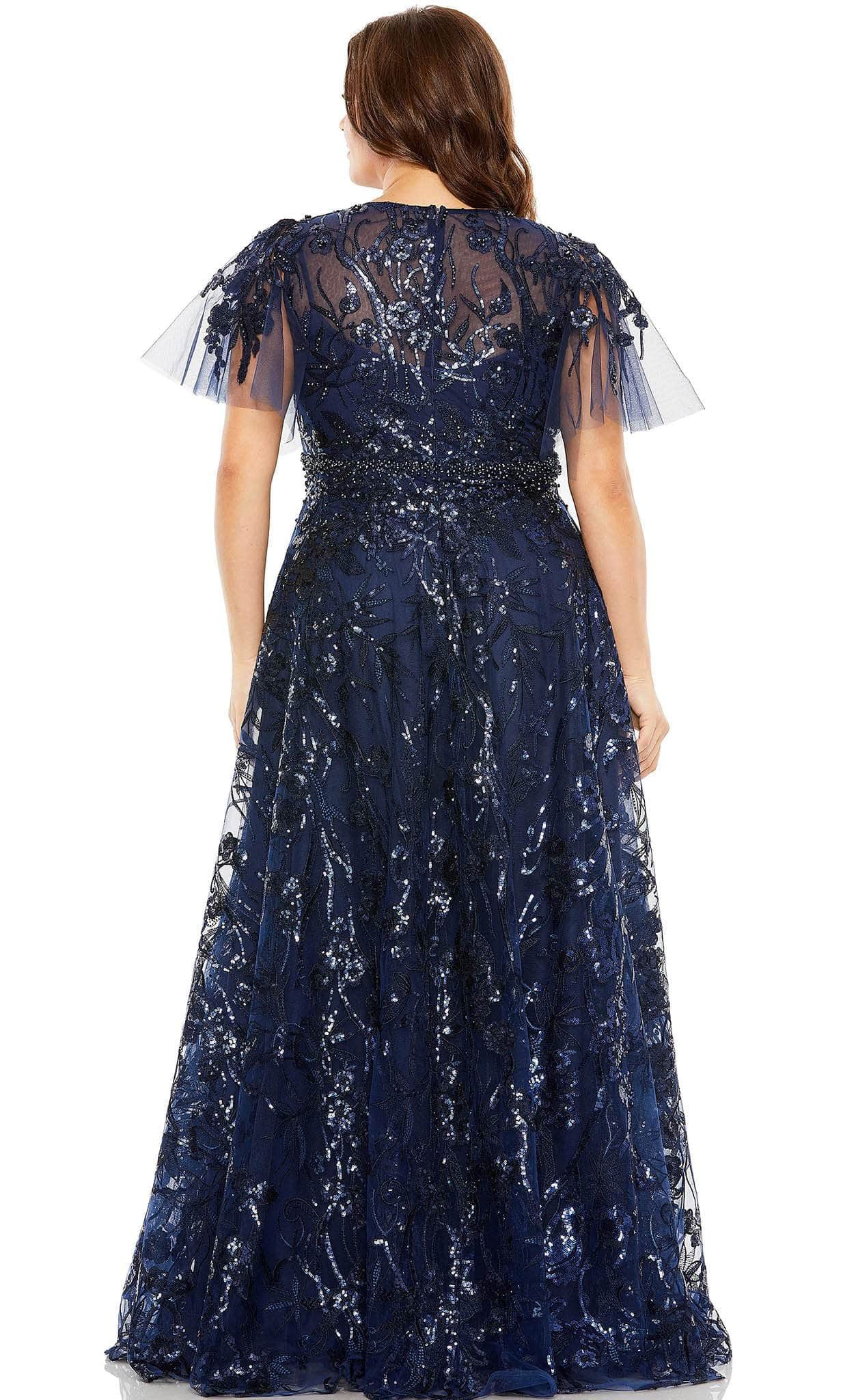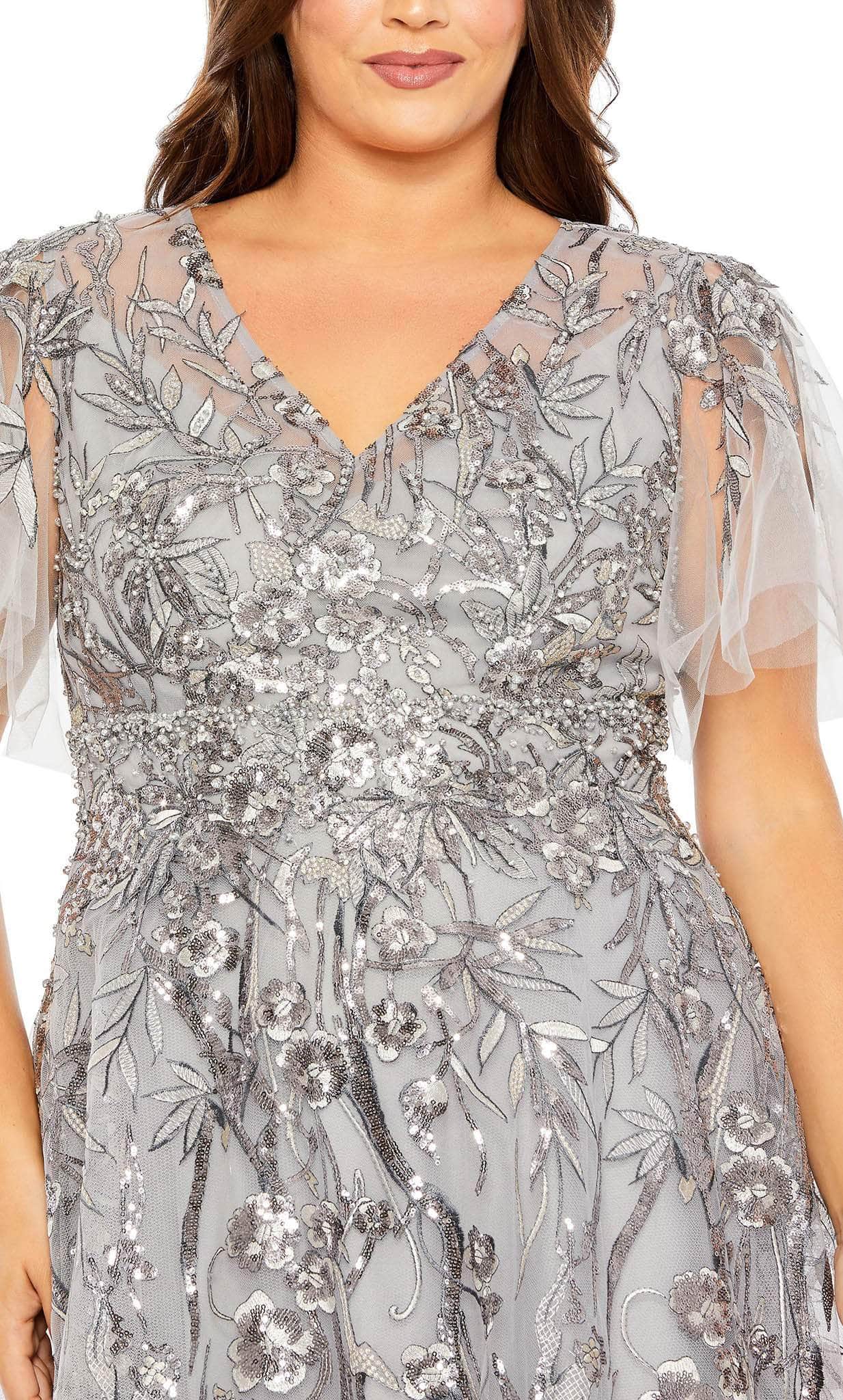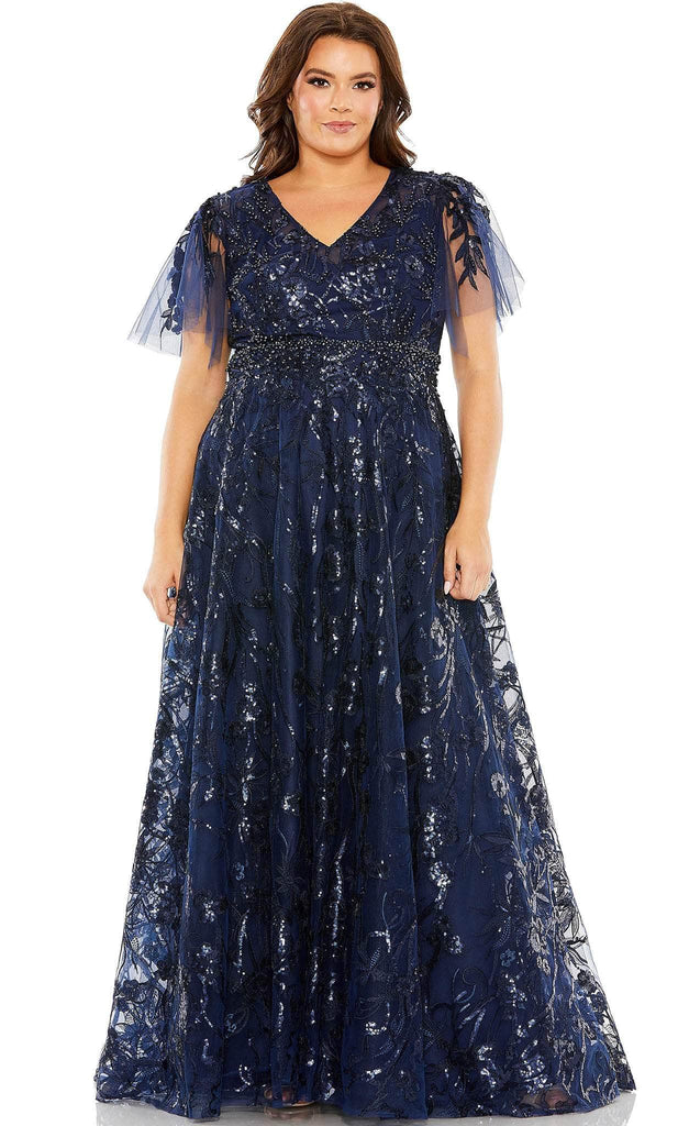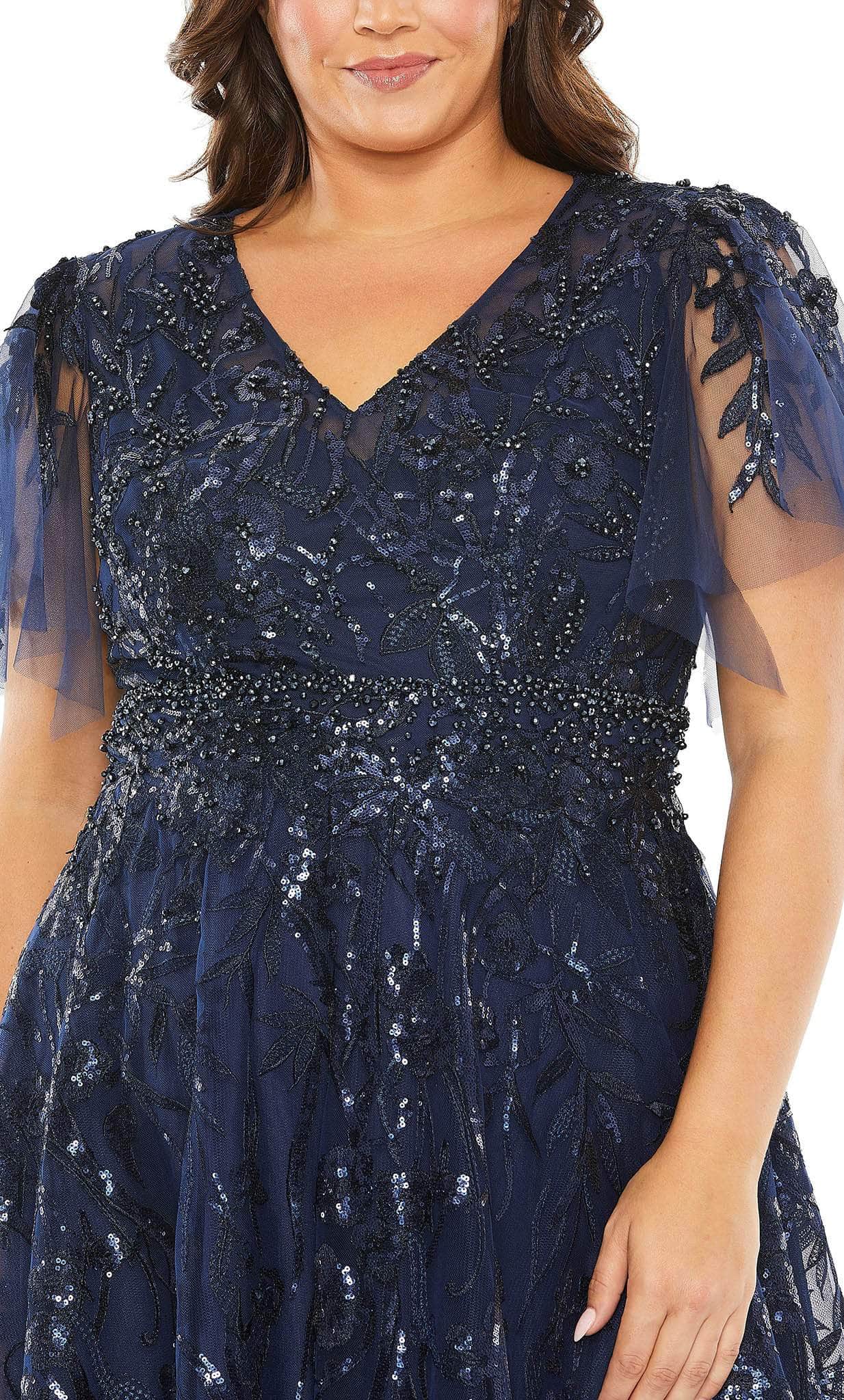 Wear this Mac Duggal 20469 to look absolutely elegant at your upcoming special event. Under the party lights, the glamorous embellishment will shimmer like crystals. This winning piece features a bodice that is crowned with a V neckline and framed with short sleeves, and a fully enclosed back that is secured with a center zipper closure. The skirt parades in an A-line silhouette. This Mac Duggal 20469, with its distinct style, exudes sophistication, class, and elegance. Models are wearing Midnight and Platinum colors.