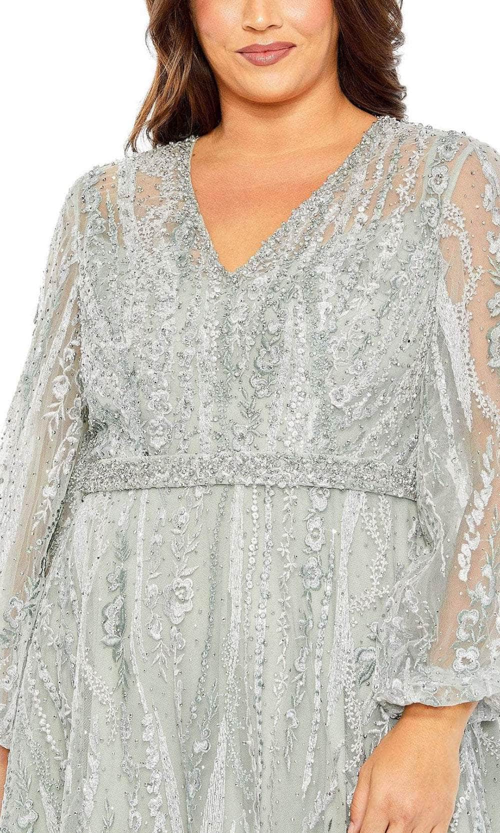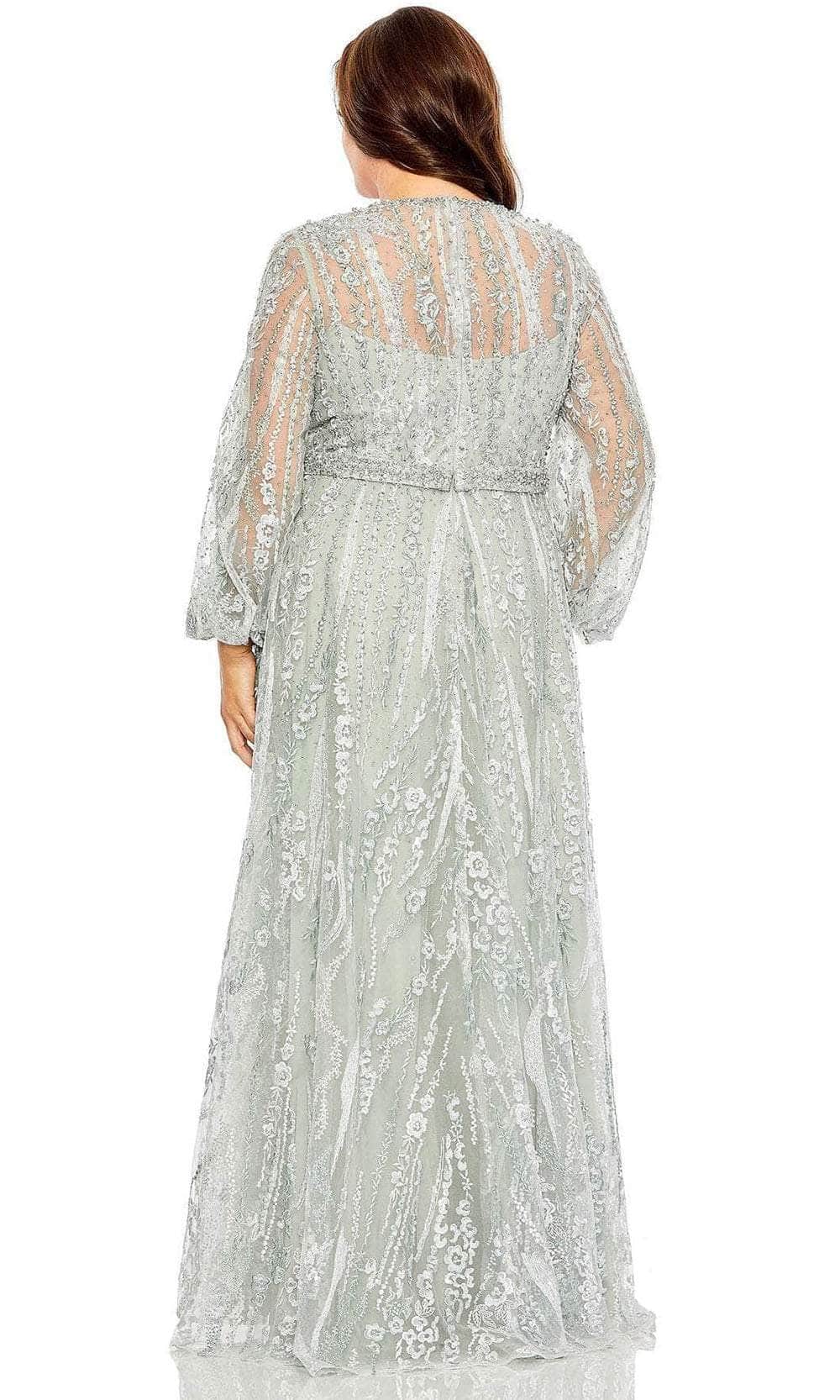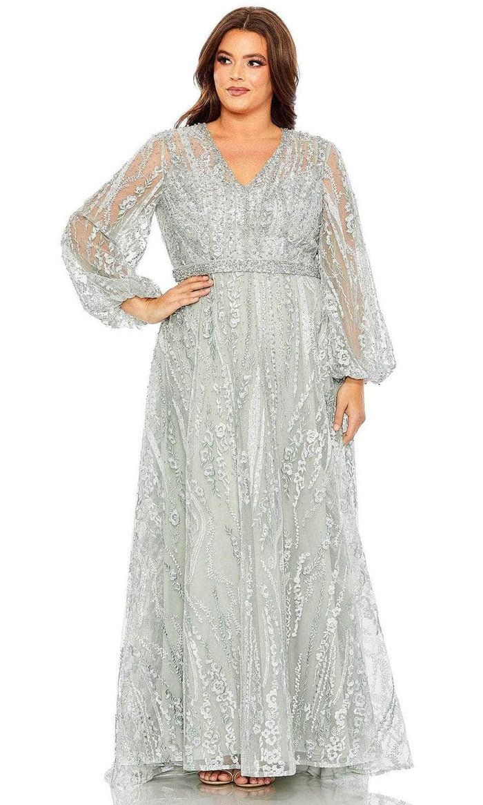 Be the loveliest of them all wearing this Mac Duggal 20472 masterpiece. The dress is embellished with an intricate spectacle of beading and embroidery, creating a truly remarkable appearance. It shows a v-neckline, long illusion bishop sleeves, and a thin waistband. The partial illusion full back has a zipper closure at the center for a comfortable fit and ease of wear. Complete with an A-line skirt that attractively drops to the full length hemline. Experience the outstanding effect in this design by Mac Duggal 20472. Models are wearing Mauve, and Seamist colors.