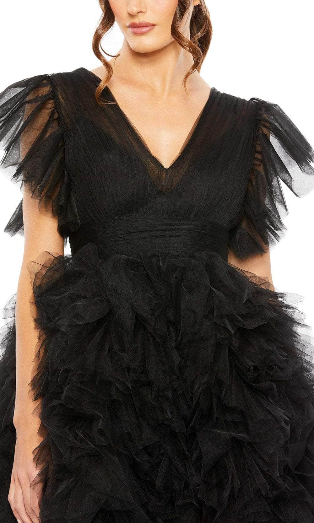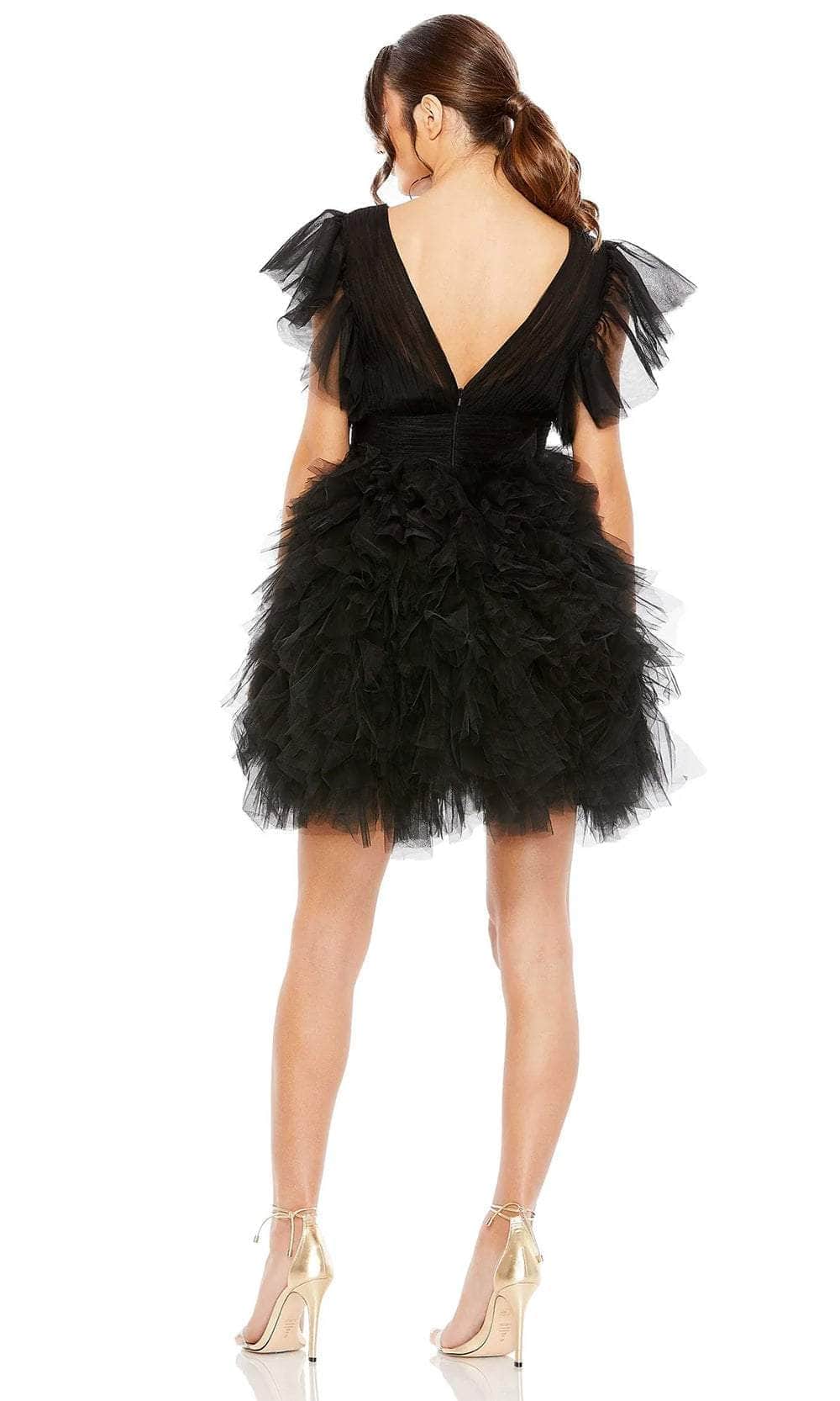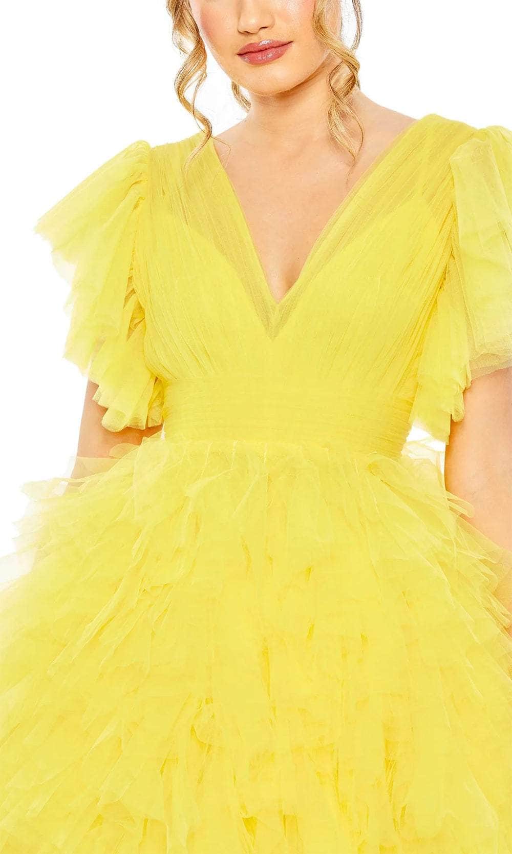 Embrace a captivating mix of romance and allure in the Mac Duggal 205051 masterpiece. This short dress transforms you into a vision of ethereal enchantment. The sheer ruche overlay cascades over a lined bodice, creating a mesmerizing textural dimension. The deep V-neckline flatters your décolletage, while the delicate flutter sleeves add a touch of whimsical charm. The nipped waist accentuates your figure, leading to a flowing A-line skirt crafted from tiers of luxurious tulle. The flirty mini hemline ensures a touch of contemporary chic. Step out in timeless elegance with our glamorous Mac Duggal 205051 creation. Models are wearing the Sunshine and Black colors.