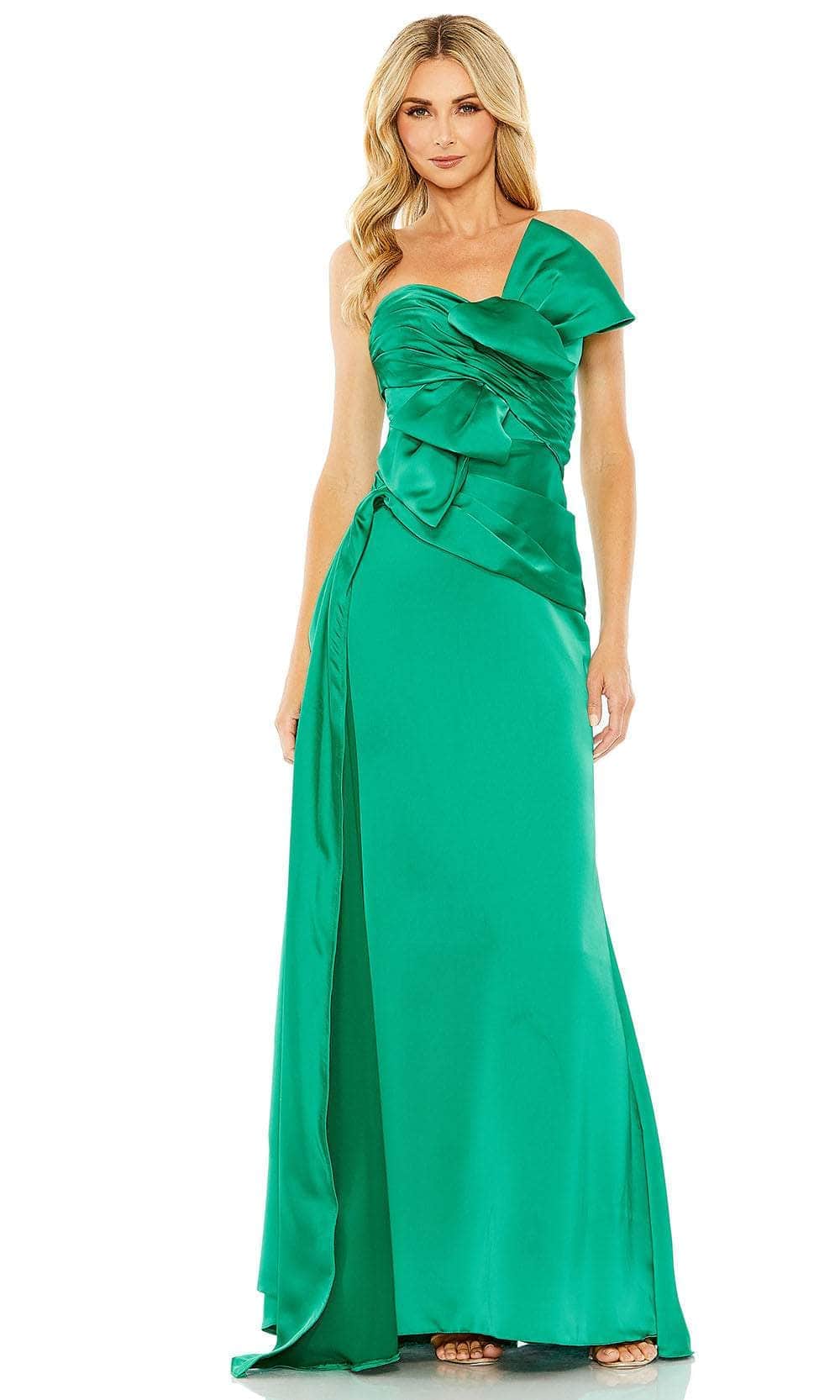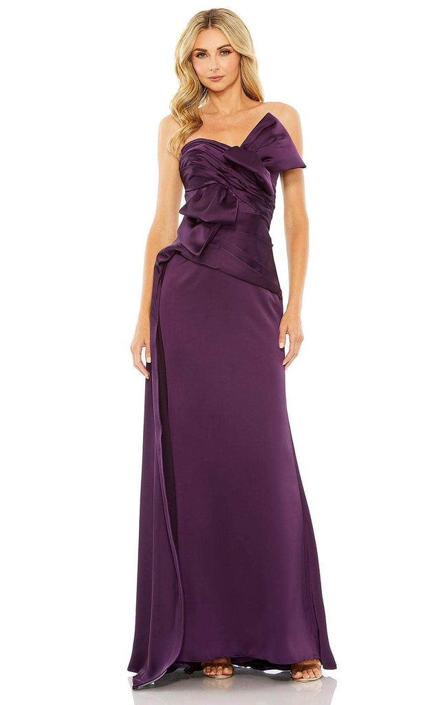 Make a fashion statement in this Mac Duggal 20585 evening gown. Gracefully sculpted from taffeta fabric, this strapless ensemble stuns in a ruched pleated bodice with a bow accent on the front. It displays a sweetheart neckline and mid-open back with zipper closure at the center. The sheath skirt flawlessly glides to the floor length hem and slight sweep train. A flowing side overskirt brings stylishness and drama to this gown. This Mac Duggal 20585 masterpiece is an instant refresh for your eveningwear repertoire. Models are wearing the Aubergine, and Emerald colors.