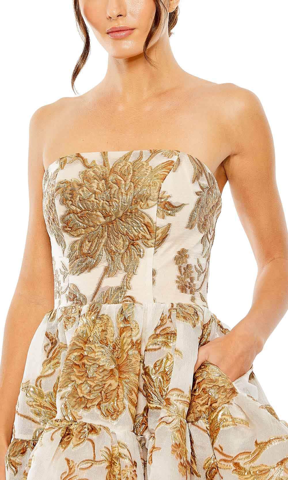 Elegance meets modern charm in Mac Duggal 20718, a dress that embodies timeless beauty. Tailored from luxurious brocade fabric, this stunning piece is a work of art. The strapless fitted bodice, with meticulous clean seams, accentuates your figure with a touch of sophistication. The straight-across neckline adds a classic touch, while the concealed back zipper closure ensures a seamless look. The short-length skater skirt flows gracefully in an A-line silhouette, allowing you to move with effortless grace and style. Leave a lasting impression in this exquisite Mac Duggal 20718 masterpiece. Model is wearing Bronze color.