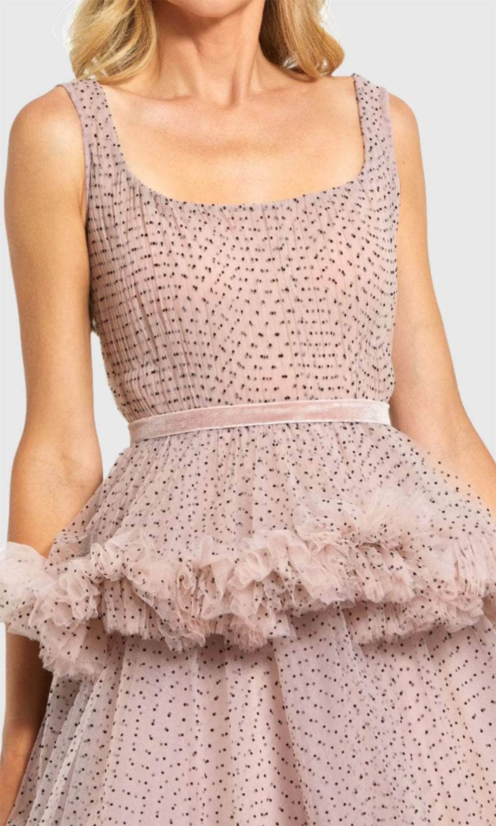 Evoke a vision of ethereal grace in the Mac Duggal 20776 masterpiece. This captivating tea-length dress is a testament to timeless elegance. Crafted from a luxurious blend of tulle and net fabric, it features a captivating square neckline that flatters the collarbone. Delicate tank straps offer a touch of minimalist structure, while the sleeveless design ensures cool comfort for afternoon events. The cascading ruffled A-line skirt adds a touch of romantic whimsy. Ensure you'll twirl with effortless grace in this Mac Duggal 20776 creation. Model is wearing the Blush color.
