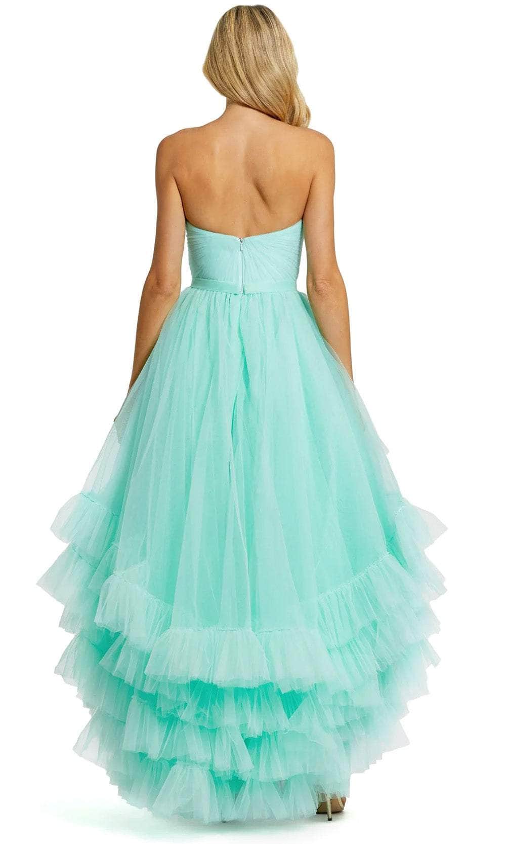 Enchant everyone with the ethereal beauty of the Mac Duggal 20892 gown. Crafted from delicate tulle adorned with fine ruching, this mesmerizing creation features a silhouette accentuated by tailoring lines. The strapless bodice boasts a sweetheart neckline, framing the décolletage with grace. A satin band cinches the waist to perfection, while a concealed zipper closure ensures a seamless fit along the midrise back. The layered A-line skirt adds dimension, adorned with ruffled accents and a high-low hem. Elevate your allure with the exquisite charm of the Mac Duggal 20892 masterpiece. Model is wearing the Aqua color.