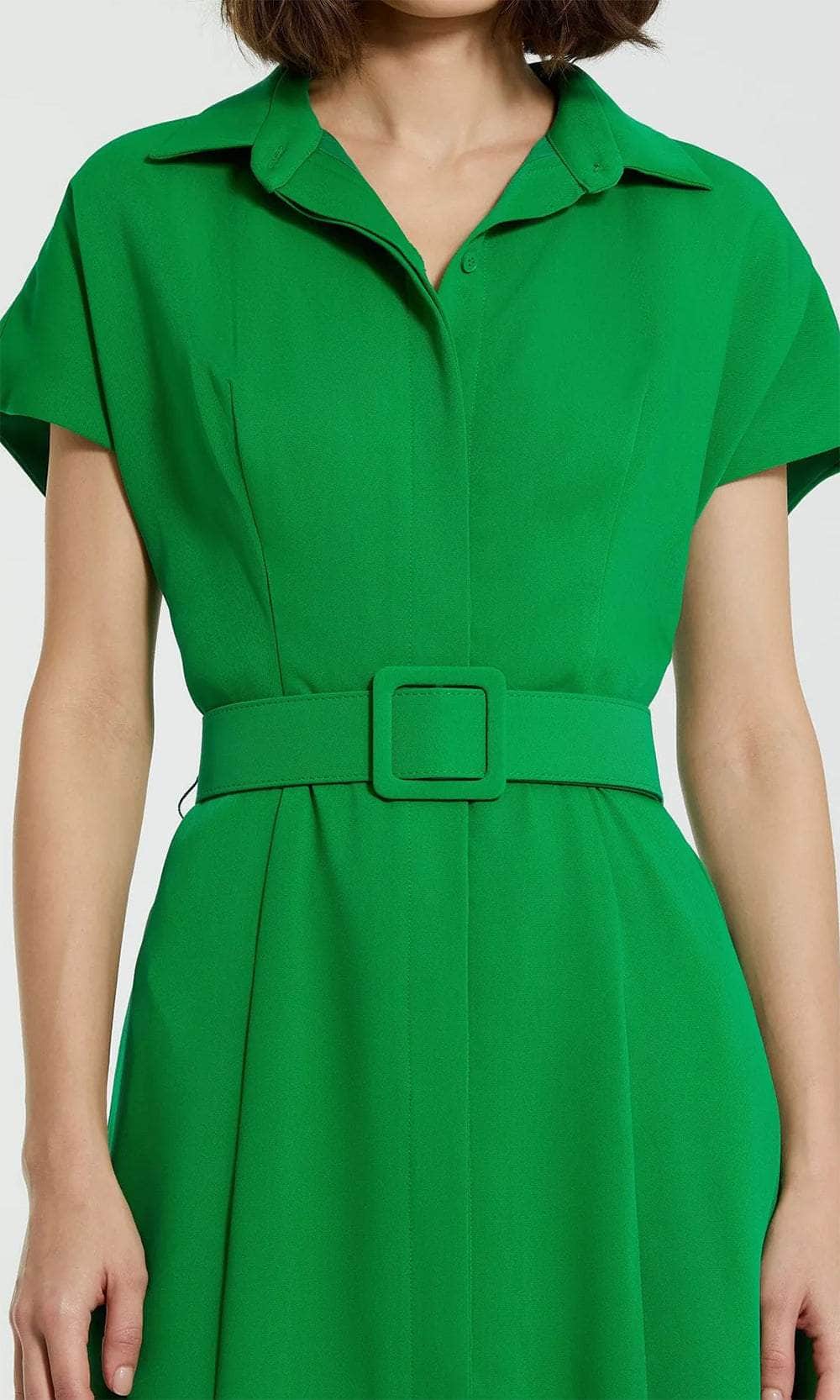 Details: Short Sleeves, Seams, Collared, Belt, Side Pockets