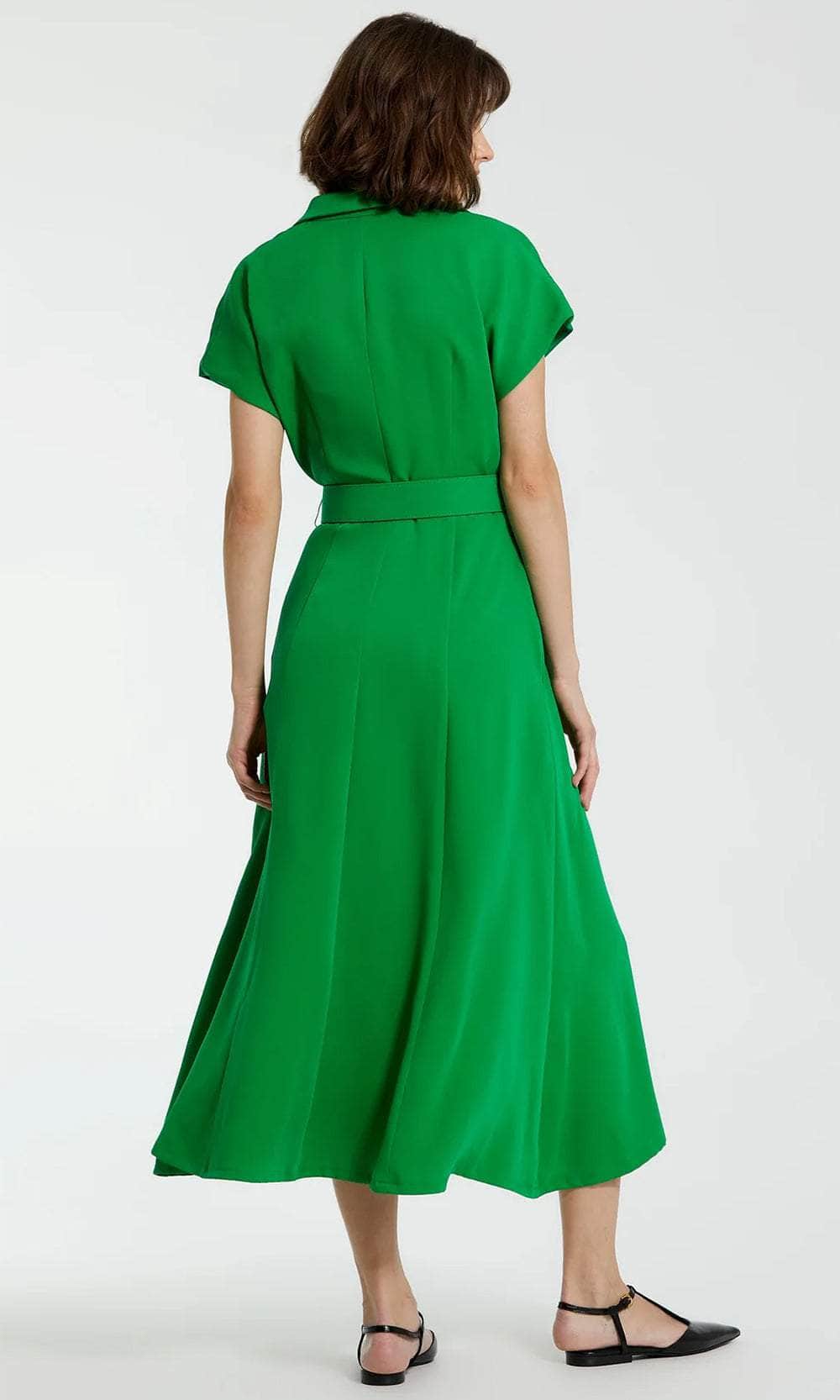 Look timeless with a hint of sultry in this Mac Duggal 21000 dress, tailored from elegant crepe fabric, features precise seams, a chic collar, and short sleeves. The V-neckline adds a touch of sophistication, while the tea-length skirt flows gracefully in an A-line silhouette. This dress combines timeless style with modern elegance, making it perfect for any occasion. With its refined design and flattering fit, the Mac Duggal 21000 ensures a captivating and polished appearance. Model is wearing Spring Green color.
