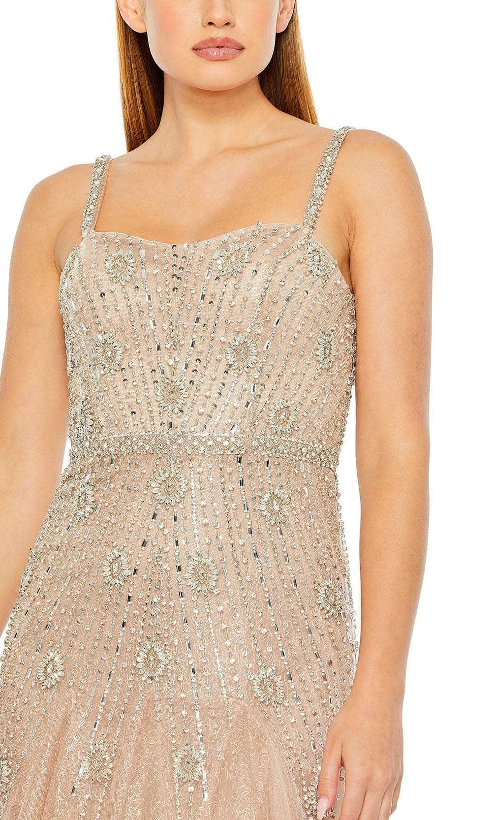 Be ready to capture the spirit of that romantic evening in this Mac Duggal 2236 evening dress. This dress showcases an endearing sweetheart neckline on a bodice which features wonderful crystal bead embellishments. Additionally, it has embellished thin straps for support. The back is mid-open and is secured by a zipper for a refined finish. An A-line silhouette is also exhibited on the skirt, evident down to its full length. All eyes will be on you in this elegant Mac Duggal 2236 dress. Models are wearing Black Silver, and Nude Silver colors.