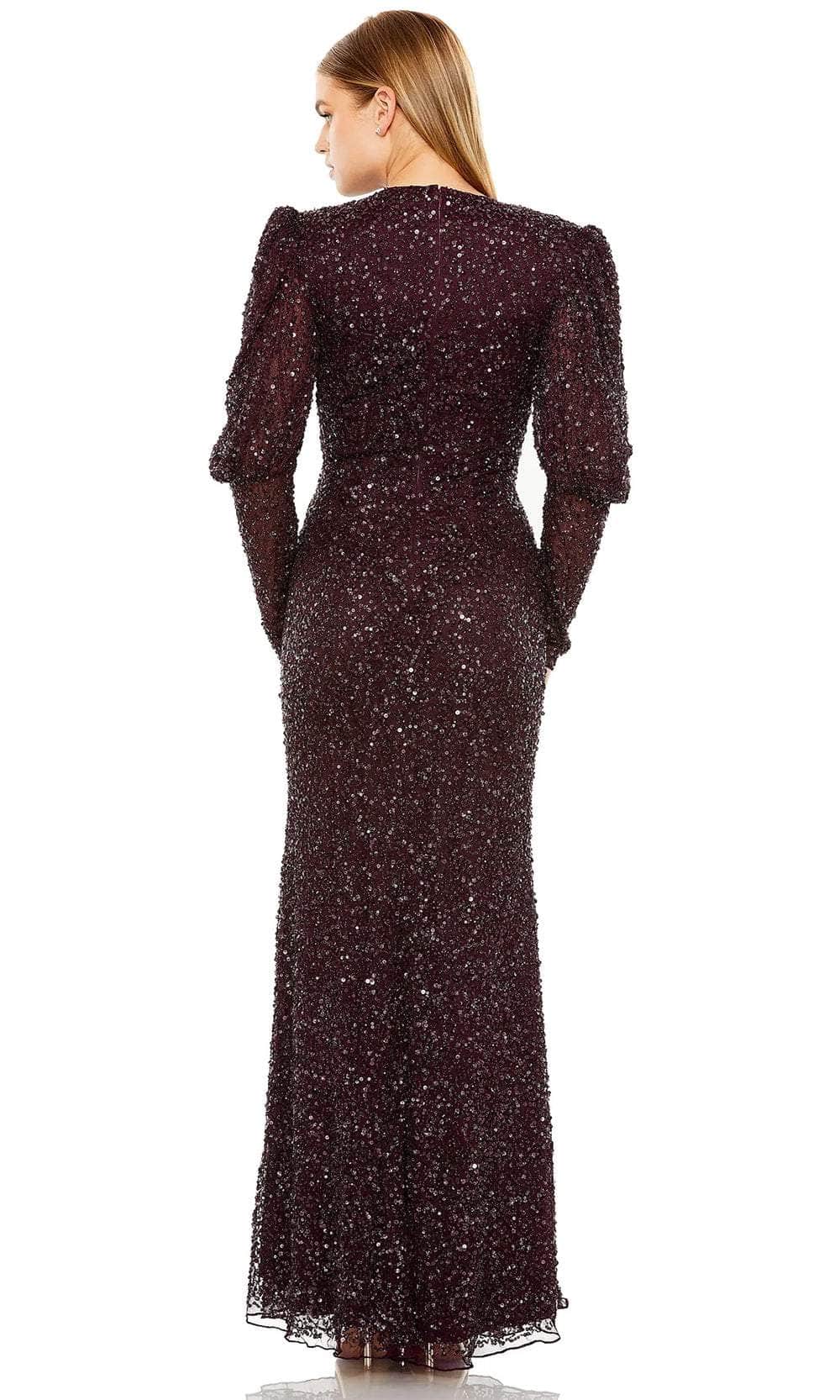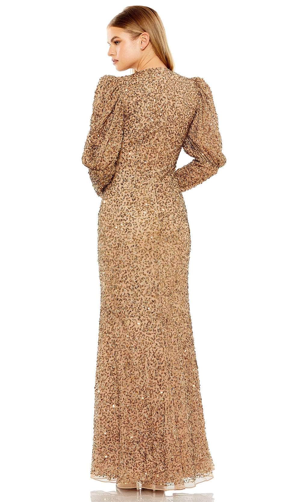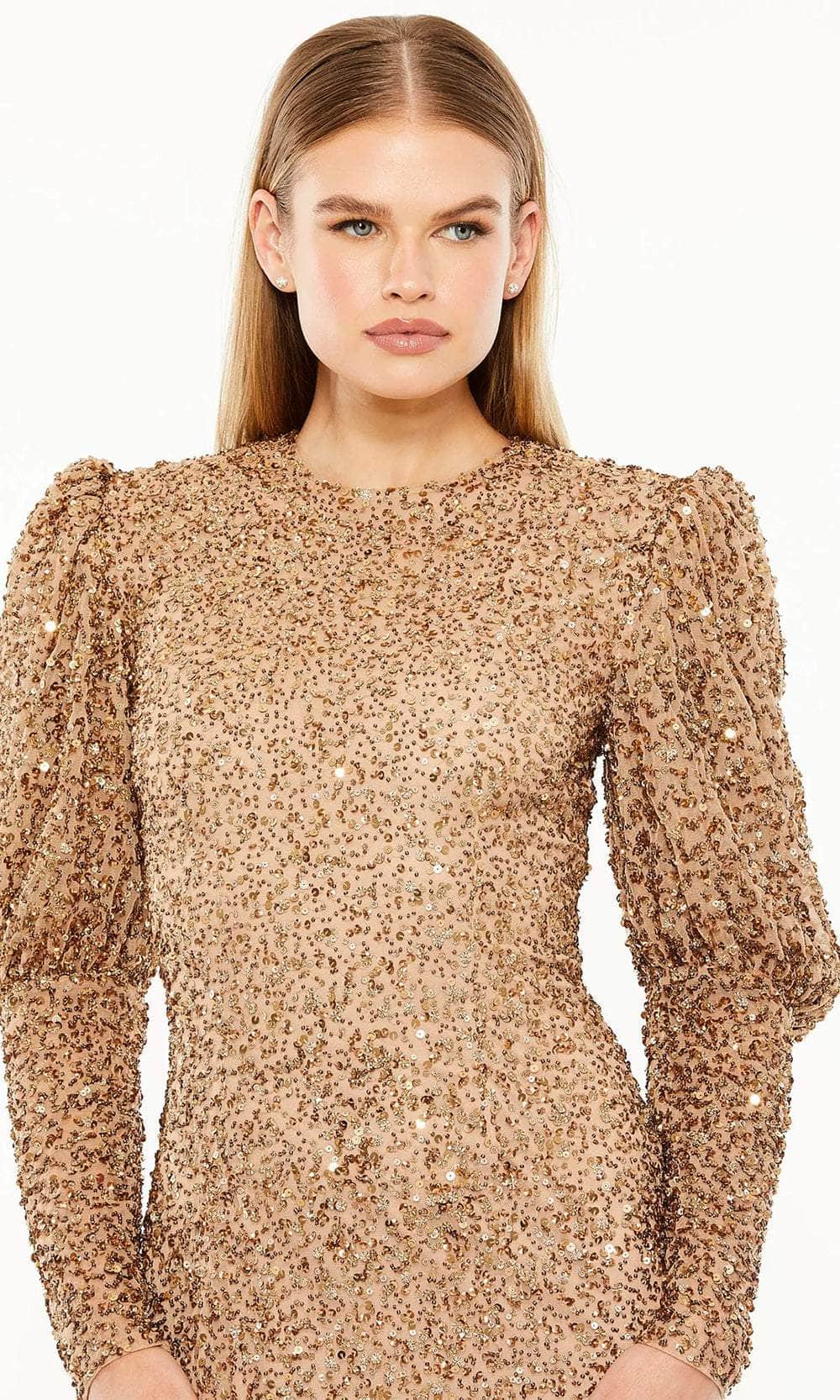 Radiate timeless elegance in the Mac Duggal 24000 masterpiece. This exquisite evening dress shimmers with an air of effortless sophistication. Crafted from gorgeous sequined mesh fabric, it sculpts your figure with a flattering jewel neckline. Delicate gathered long puff sleeves add a touch of romantic charm, while the fully lined trumpet skirt cascades into a dramatic full-length hem. The result? A silhouette that is both universally flattering and effortlessly glamorous. Ideal for weddings, galas, or any formal event demanding a touch of red-carpet allure, this Mac Duggal creation guarantees you'll be a vision of sophisticated beauty. Models are wearing the Blackberry and Copper colors.