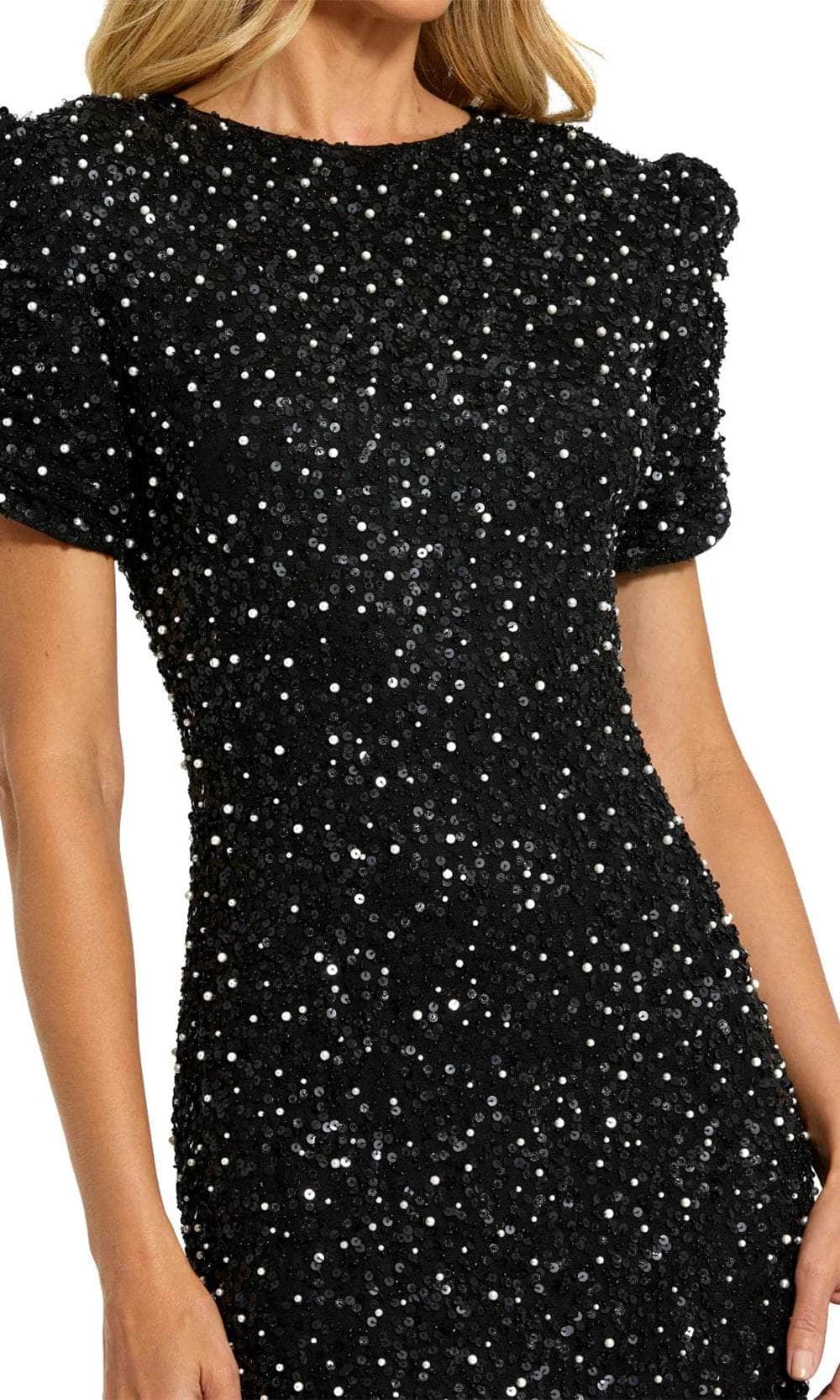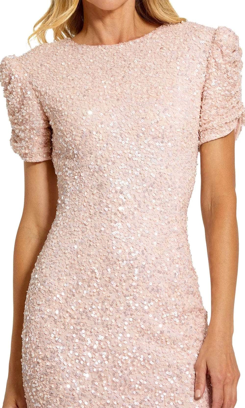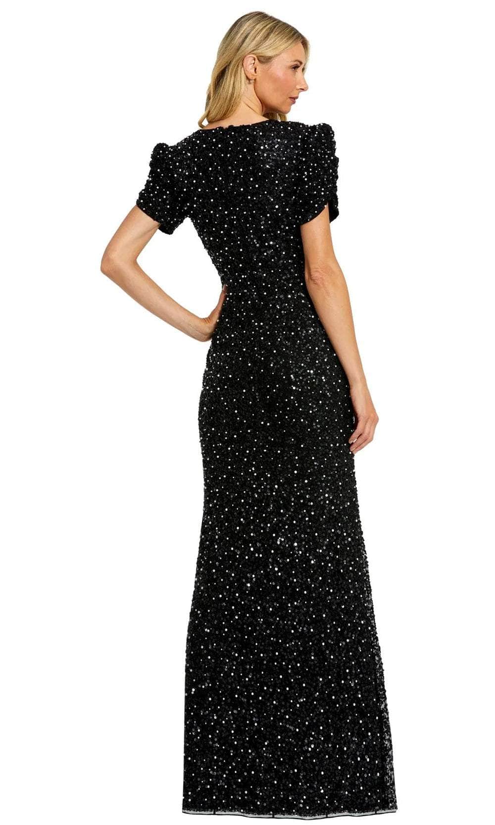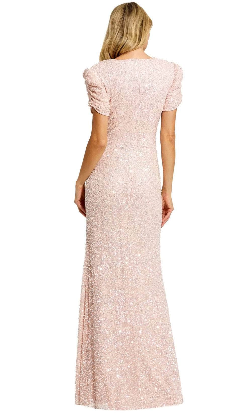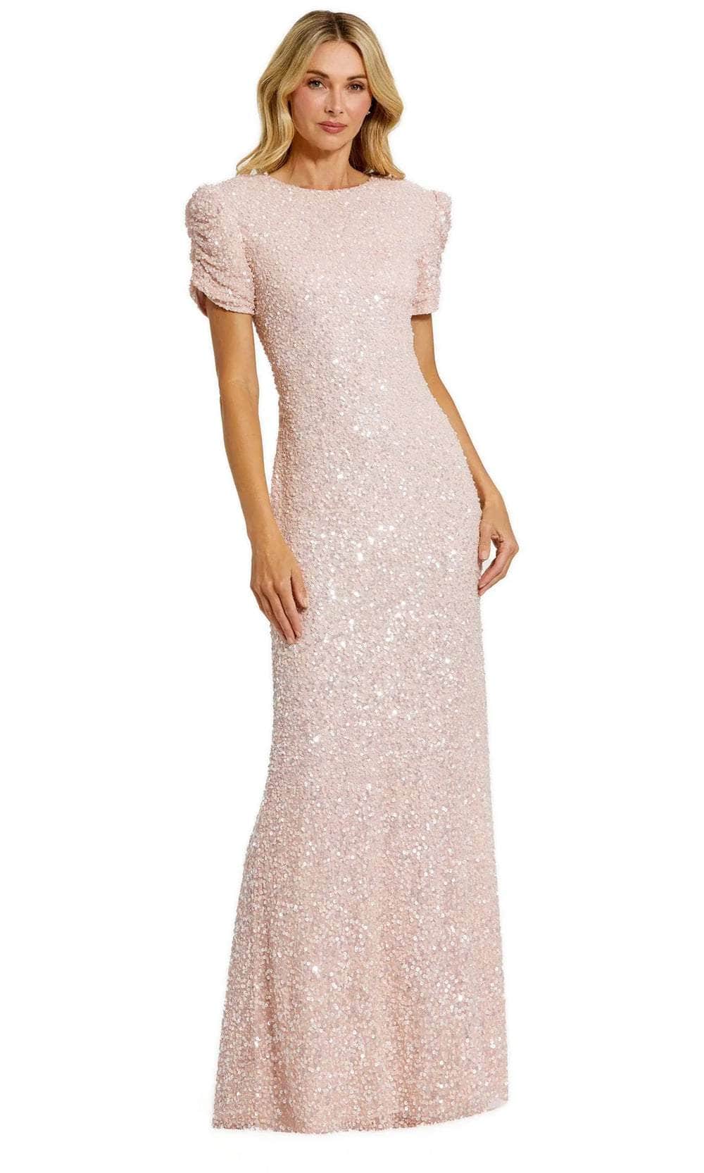 Exude timeless elegance in the Mac Duggal 24003 masterpiece. This exquisite evening dress, meticulously crafted from gorgeous beaded fabric, sculpts the figure with a flattering jewel neckline and delicate gathered short puff sleeves. The fully lined sheath skirt cascades into a dramatic floor-length hem, creating a silhouette that is both sophisticated and universally flattering. Perfect for weddings, galas, or any black-tie affair, the Mac Duggal 24003 creation ensures you'll be a vision of understated luxury that never goes out of style. Models are wearing the Black and Blush colors.