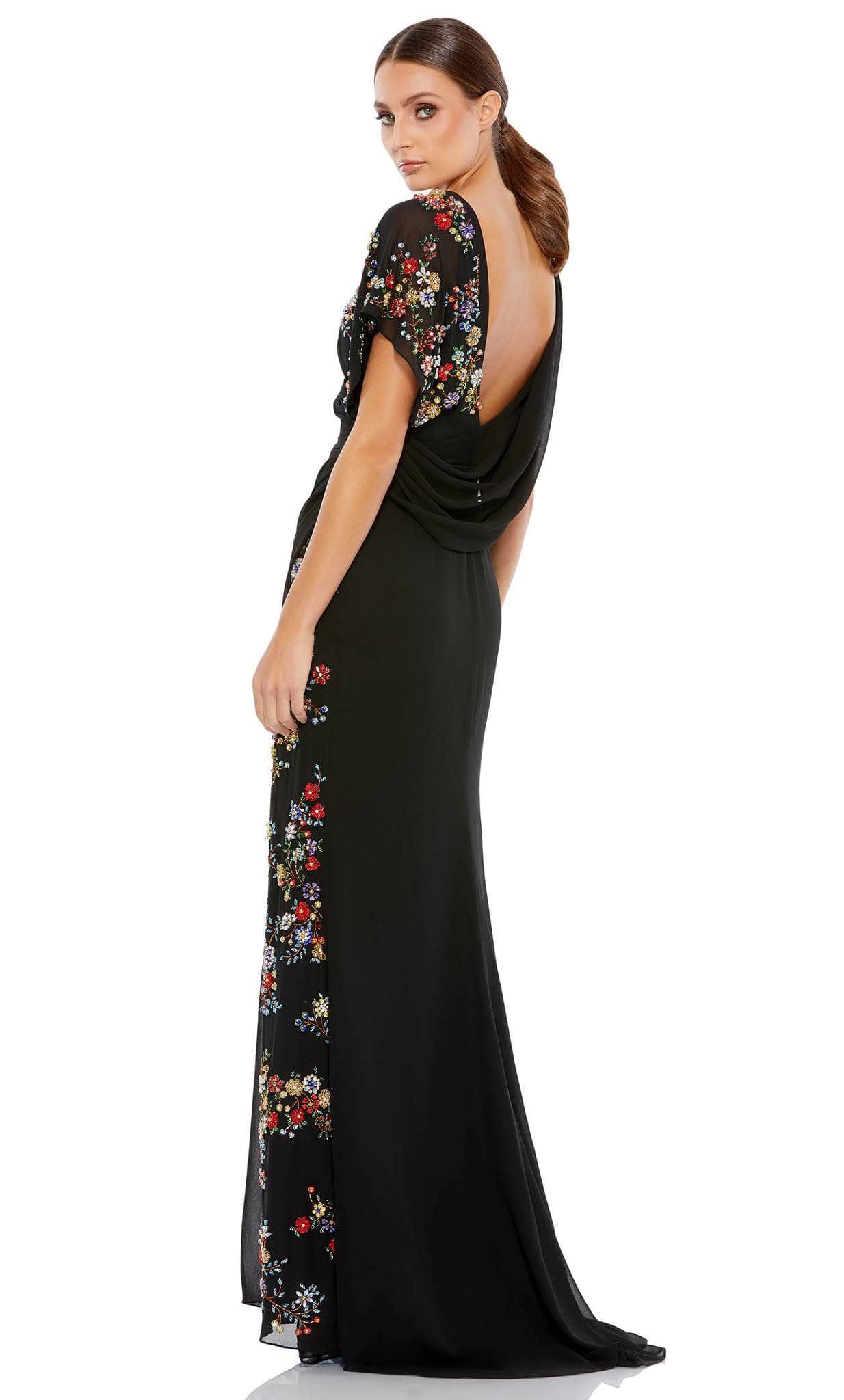 This enchanting Mac Duggal 26530 is sure to make you the center of everyones attention. This gown is a beautifully embellished with beads in floral patterns and boasts a deep V neckline on a faux wrapped dress. The back has a low scoop open style to show off your daring persona with elegance. The high slit adds more spice to the totality of the dress. This Mac Duggal 26530 is awesome for prom or for any special night event! Model is wearing Black Multi color.