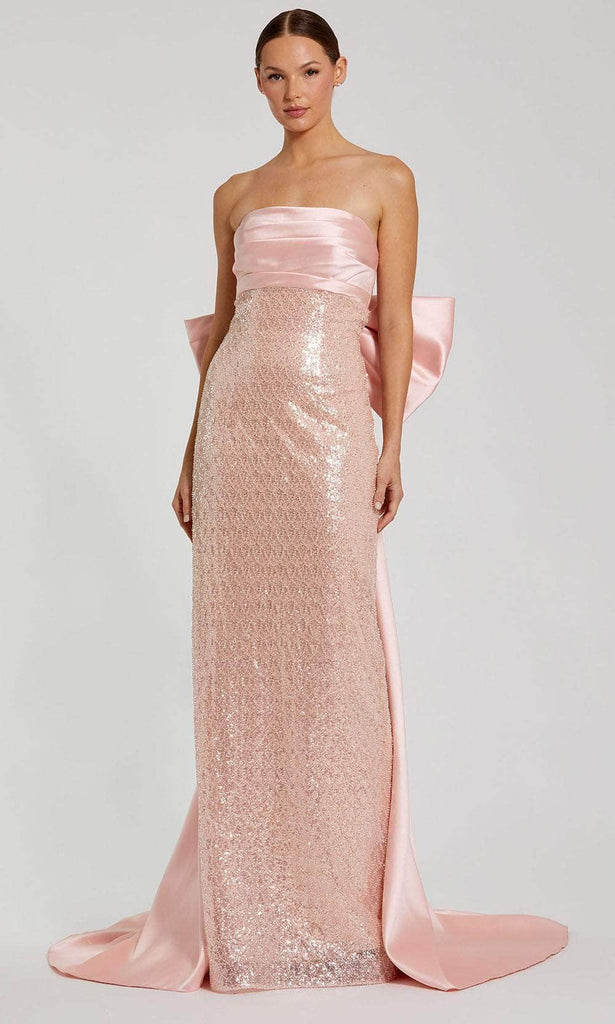 The Mac Duggal 37011 dress is a timeless piece perfect for sophisticated events. Crafted from boucle fabric, it features a strapless neckline and a tailored fit. The sleek silhouette enhances your natural shape. This Mac Duggal 21045 dress is a must-have for an elegant wardrobe update. Model is wearing the Blush color.