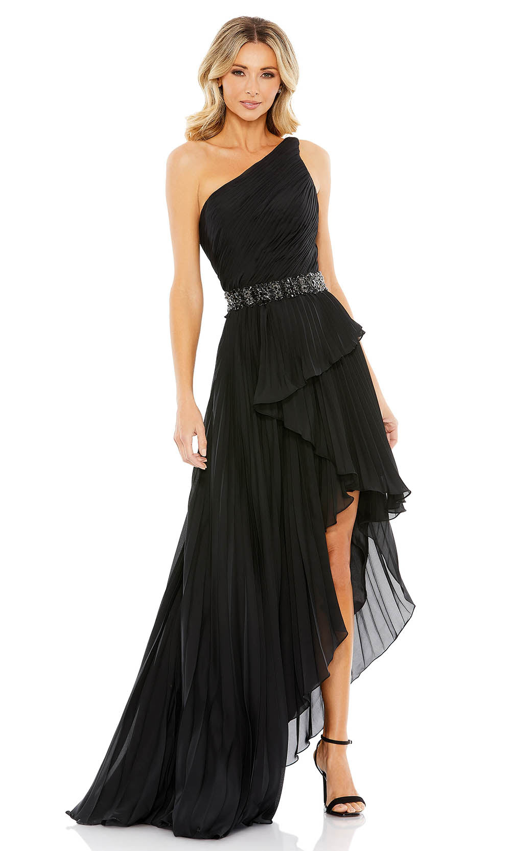 Walk in glamour and let all heads turn on you in this creation by Mac Duggal 49532. Inspired with Greek dresses, this gown presents in an asymmetric neckline in a ruched bodice. A band is put around natural waist for added details and then it parades a high low length of pleated A-line silhouette. It uses soft flowy fabric to give you comfort while you wear it. Be in this gorgeous Mac Duggal creation and leave a lasting impression.