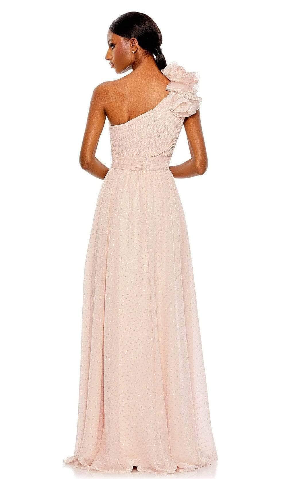 Dazzle everyone with this Mac Duggal 49536 creation. Textured with polkdot-like accents and fine ruching, this one shoulder dress reveals a ruffled flower accent. Nipped with a shirred waistband, the skirt flows into a pool on the floor. Emerge as a stunning vision in this Mac Duggal masterpiece.