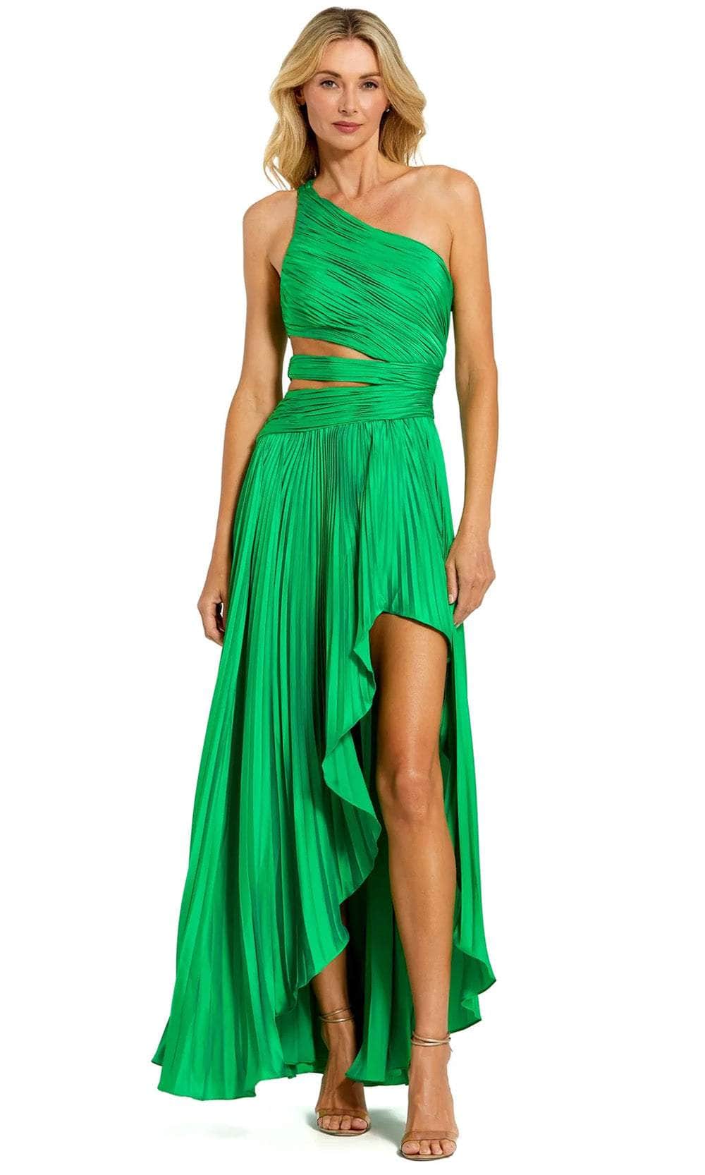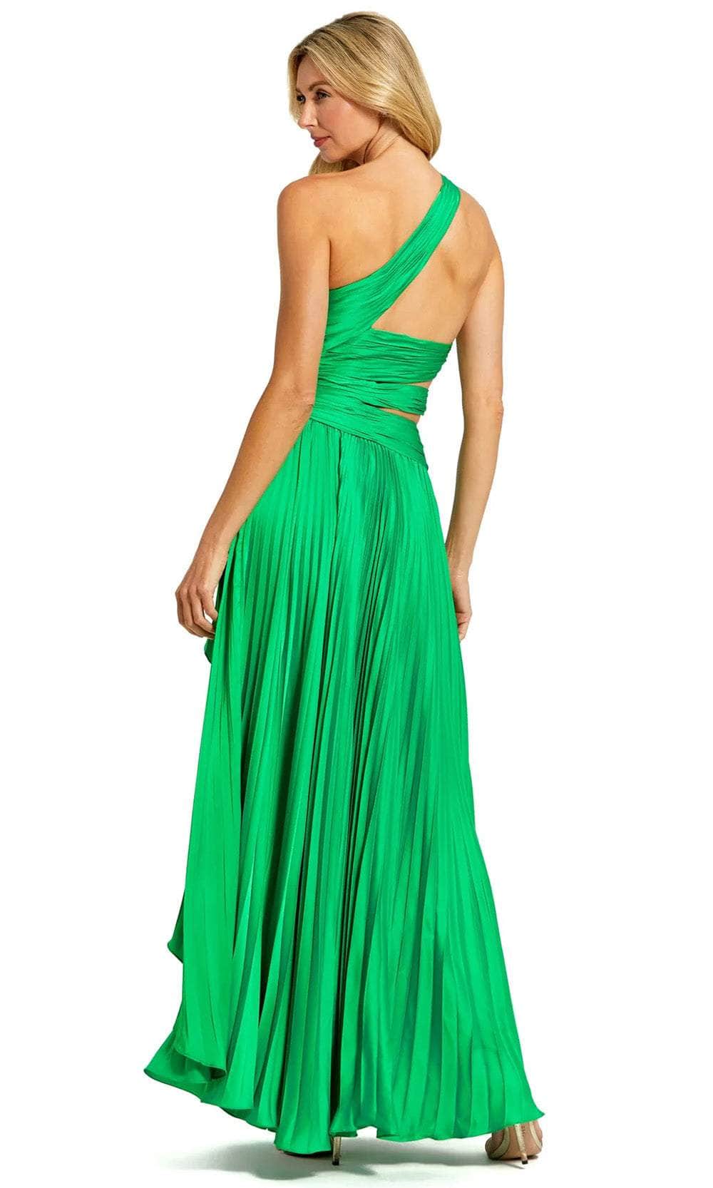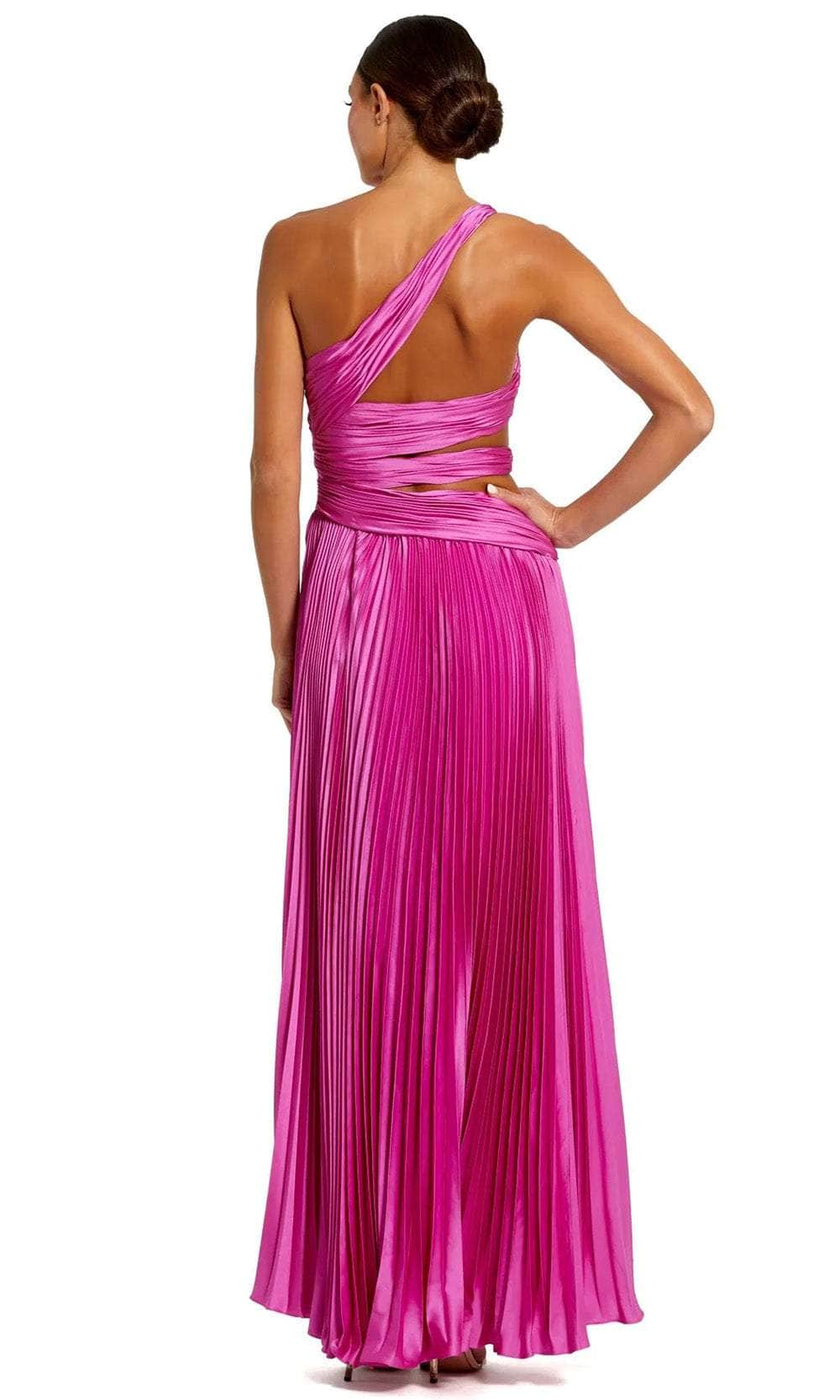 Bask in the enchanting allure of the Mac Duggal 49837 gown. Crafted from pleat detailed charmeuse fabric, this masterpiece features a silhouette with tailored lines that exude sophistication. The sleeveless bodice boasts a striking one-shoulder neckline, while the dropped waist is adorned with multi side cutouts. The partial open back, coupled with a concealed zipper closure. Completing the look is a pleated A-line skirt with a high-low design, cascading into a full-length hem. Elevate your elegance with the timeless charm of the Mac Duggal 49837 gown. Models are wearing the Fuchsia and Spring Green color.