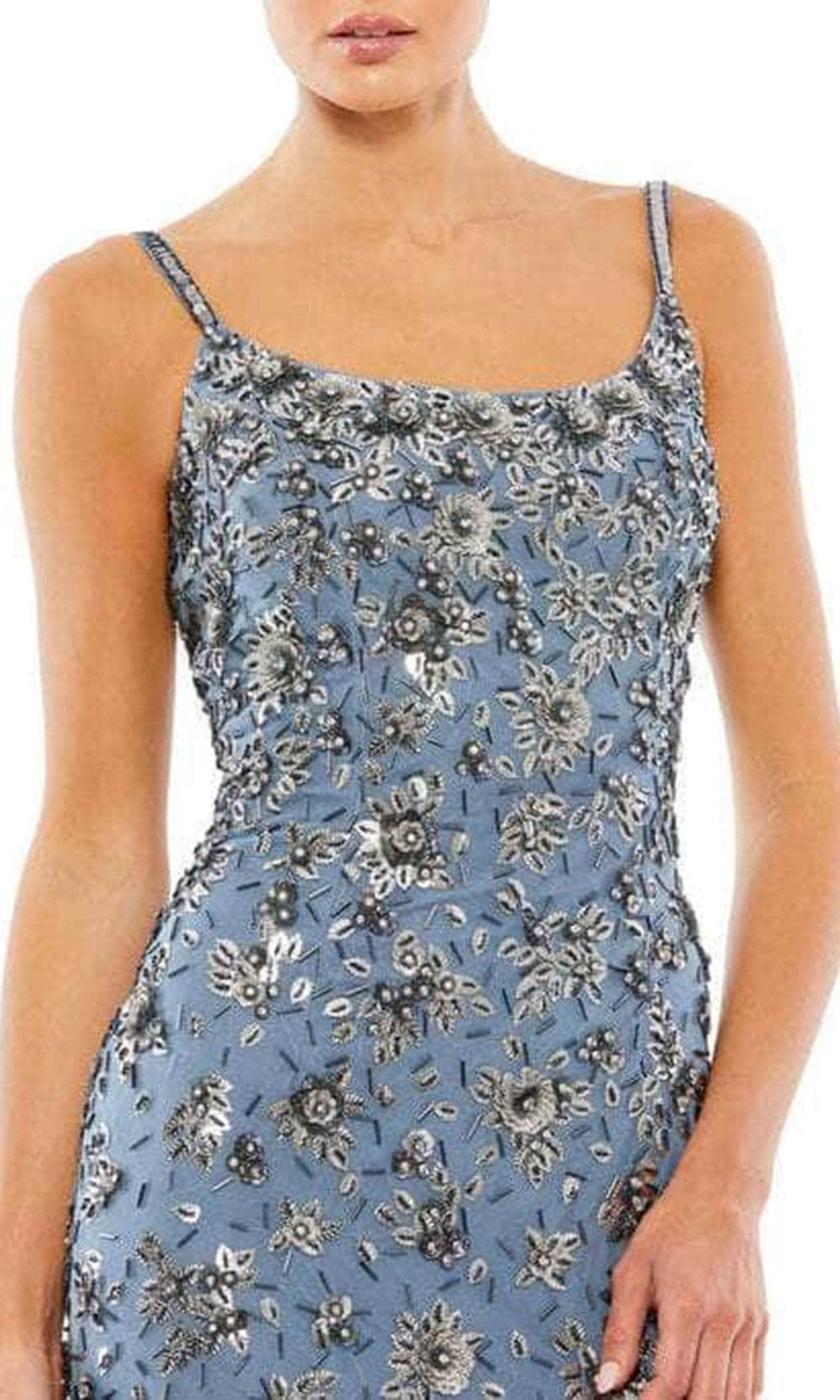 You are sure to be the life of the party when you are wearing this dazzling Mac Duggal 67869. Strike a pose with the eye-catching gorgeous sleeveless bodice that is supported by a thin strap and is perfectly amazing for your formal event. The whole is decorated with gorgeous floral hand stitch and beaded embellishments. The back is open and is supported with a back zipper closure. This full-length dress finishes with a subtle sweep train. Experience the outstanding effect in this dress by Mac Duggal. Model is wearing pink and Blue color.