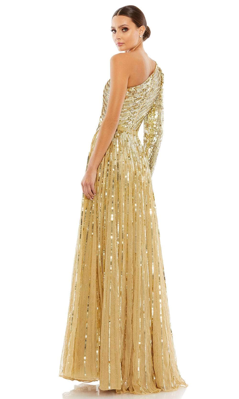 | Details: | Sequin, One Shoulder Long Sleeve, Full Length, Asymmetrical Back |