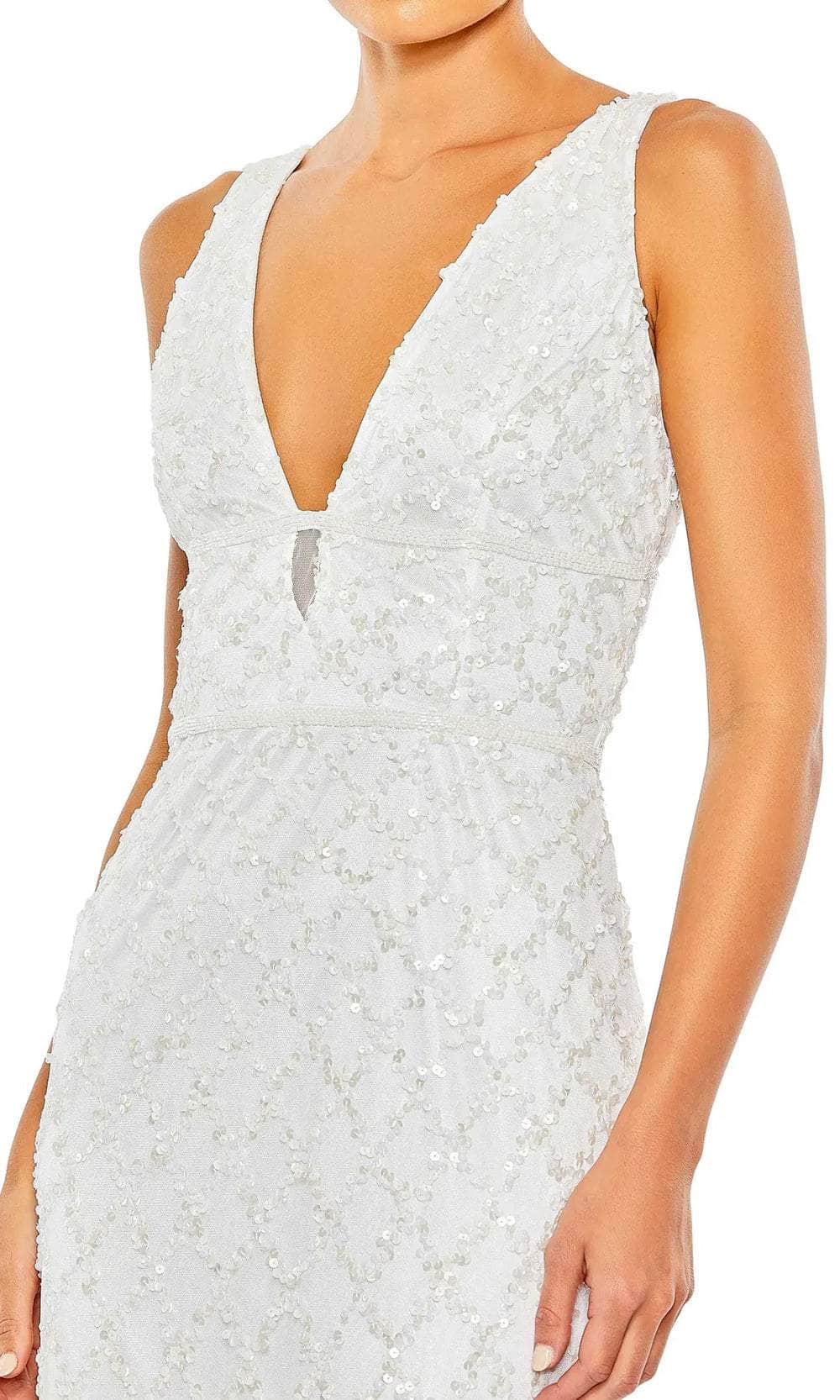 Imagine a night of eloquent style and composure at your event while wearing this gorgeous Mac Duggal 5669 masterpiece. The figure-flattering dress is embellished with glittering hand-stitched sequin designed in a lattice style that offers a dazzling glow from every viewpoint. Reveals a plunging neckline and is framed in a sleeveless bodice with hand-beaded details on the waistline that wraps around. The open back is secured with a centered zipper closure that will attractively highlight your figure, while the skirt allures in a full-length hem and ends with a sweep train. This Mac Duggal 5669 design is simply gorgeous! Models are wearing White and Coral colors.