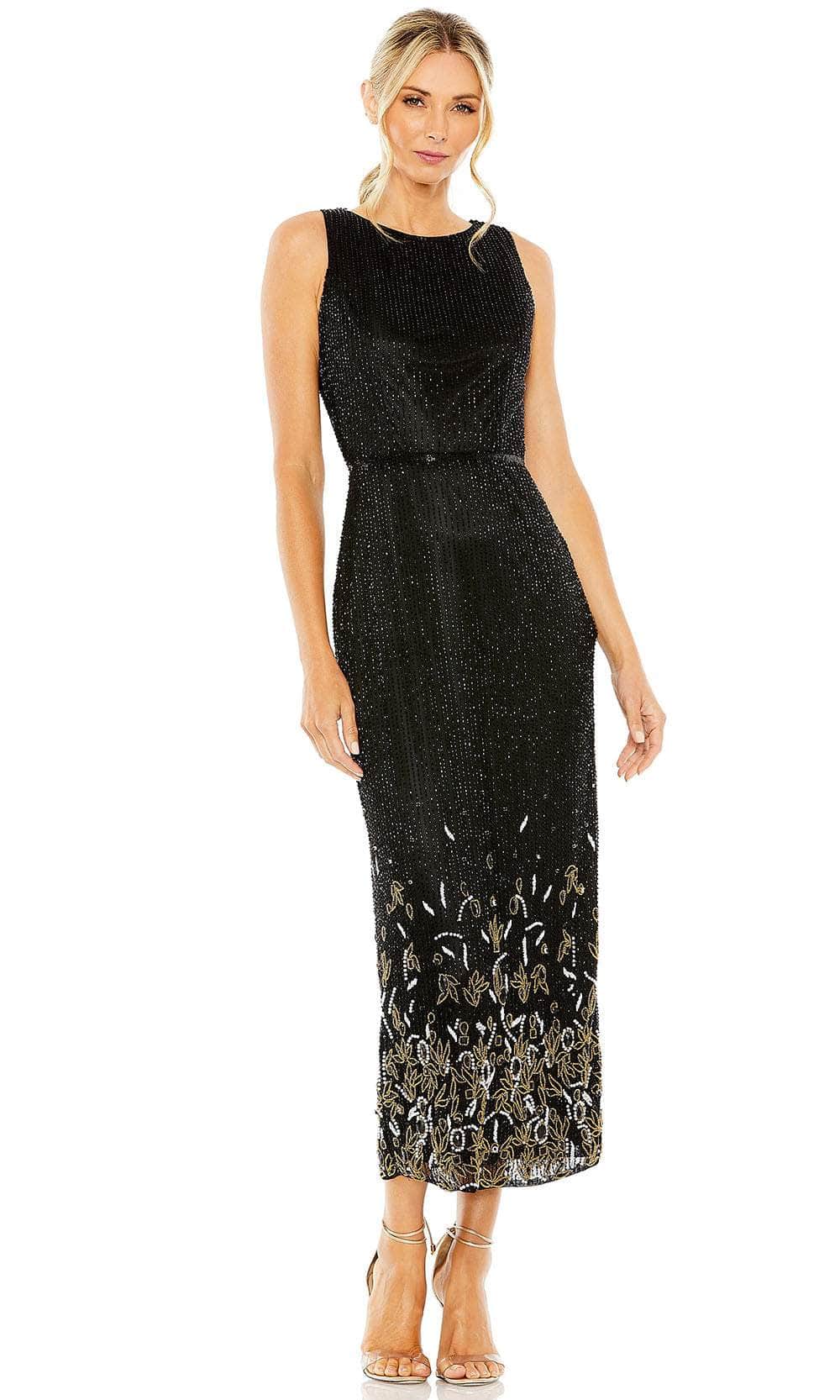 Be the embodiment of pure feminine flair in this Mac Duggal 5796 creation. Remarkable in its beauty, this sleeveless outfit is completely embellished with beadings. The fitted bodice offers a jewel neckline, a beaded thin waistband and a fully closed back with center zipper closure. The hem of the column skirt is embellished with contrasting floral beading and has a tea-length hemline. Leave everyone speechless when you enter the room in this Mac Duggal 5796 dress. Model is wearing the Black Multi color.