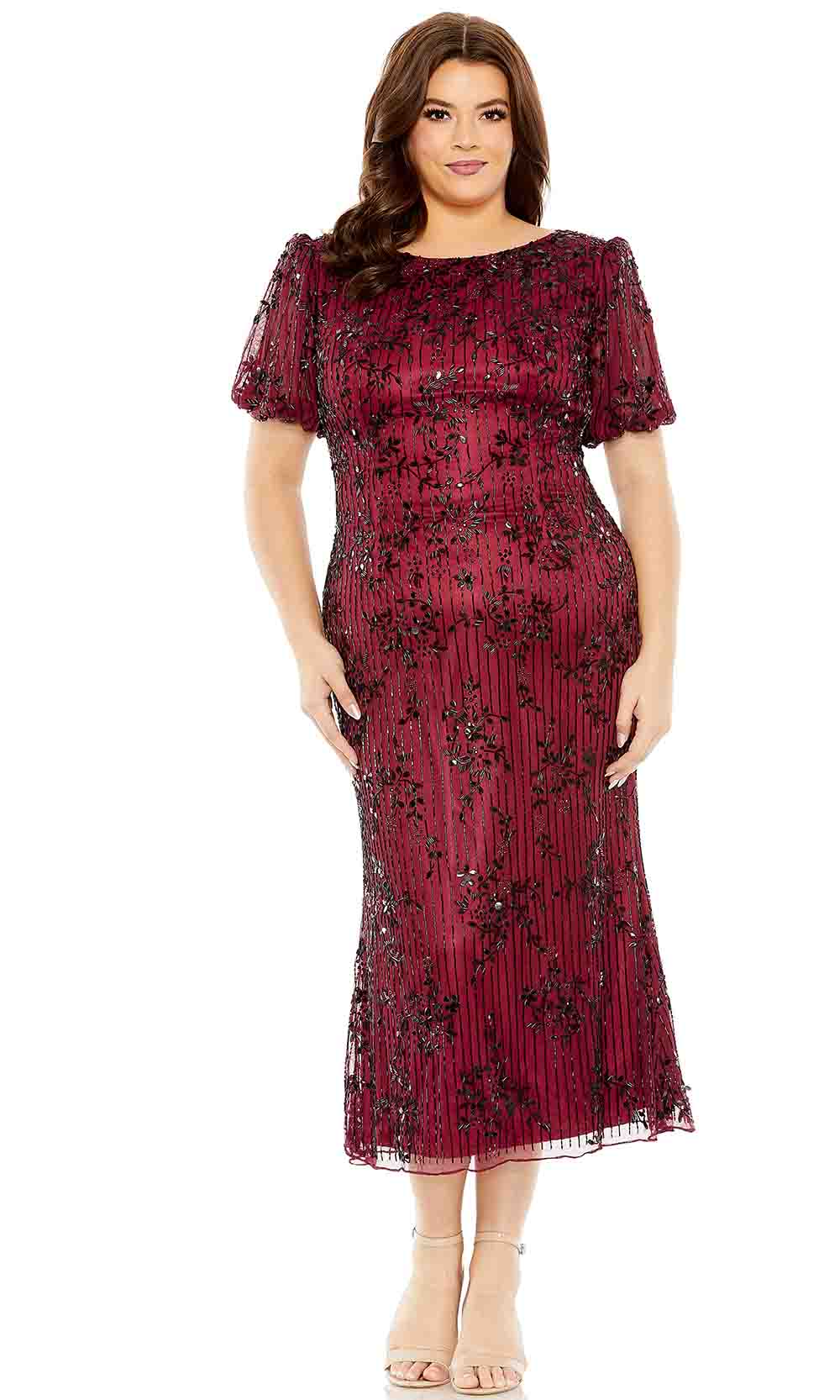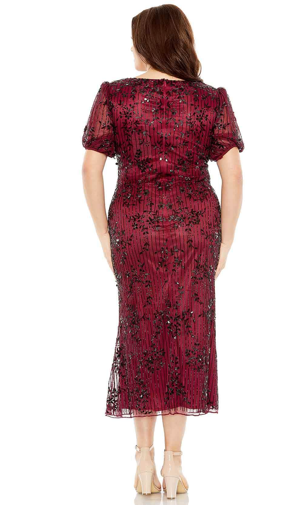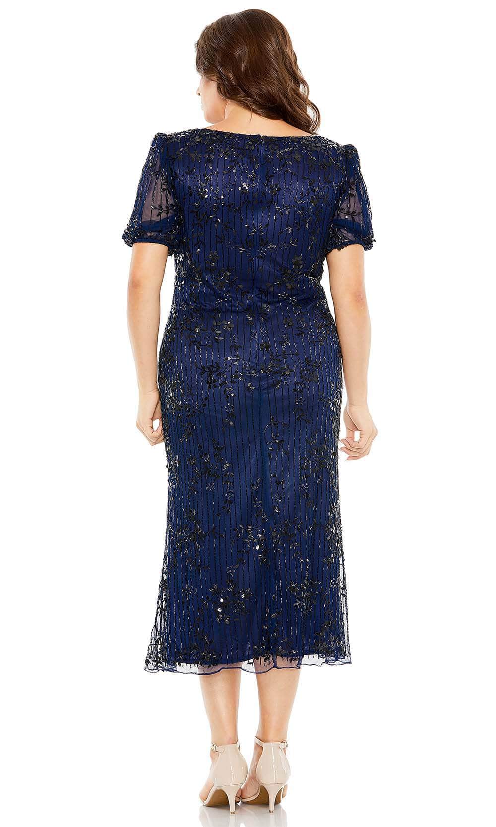 Mac Duggal 5940 - Embellished Puff Sleeve Tea-Length Dress