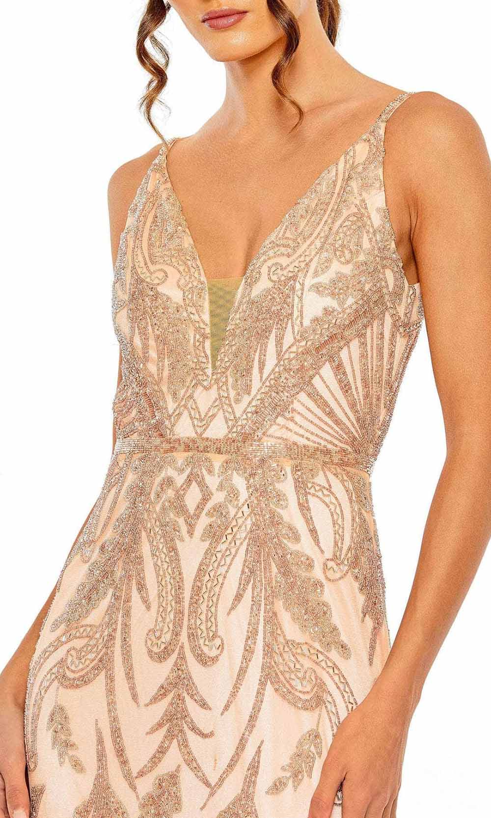 Step into the spotlight wearing the sequin embellished Mac Duggal 6015 creation. This dress is designed to make a statement with its dazzling sequin embellishments that catch the light from every angle, creating a mesmerizing effect. The plunging V-neckline adds a touch of allure and sophistication, while the sleeveless design keeps you cool and comfortable with its beaded waist detail accentuates your figure and adds a glamorous touch. Finally, hidden back zipper ensures a seamless and secure fit. Look sophisticated and classy with this Mac Duggal masterpiece. Model is wearing Apricot color.