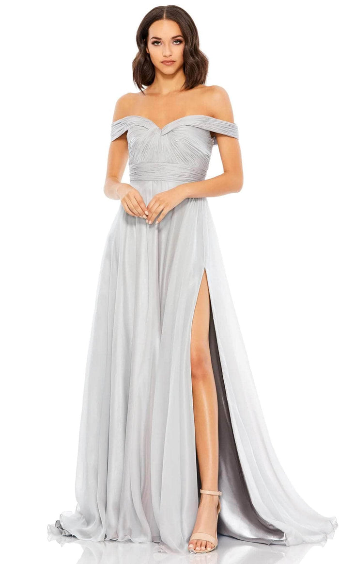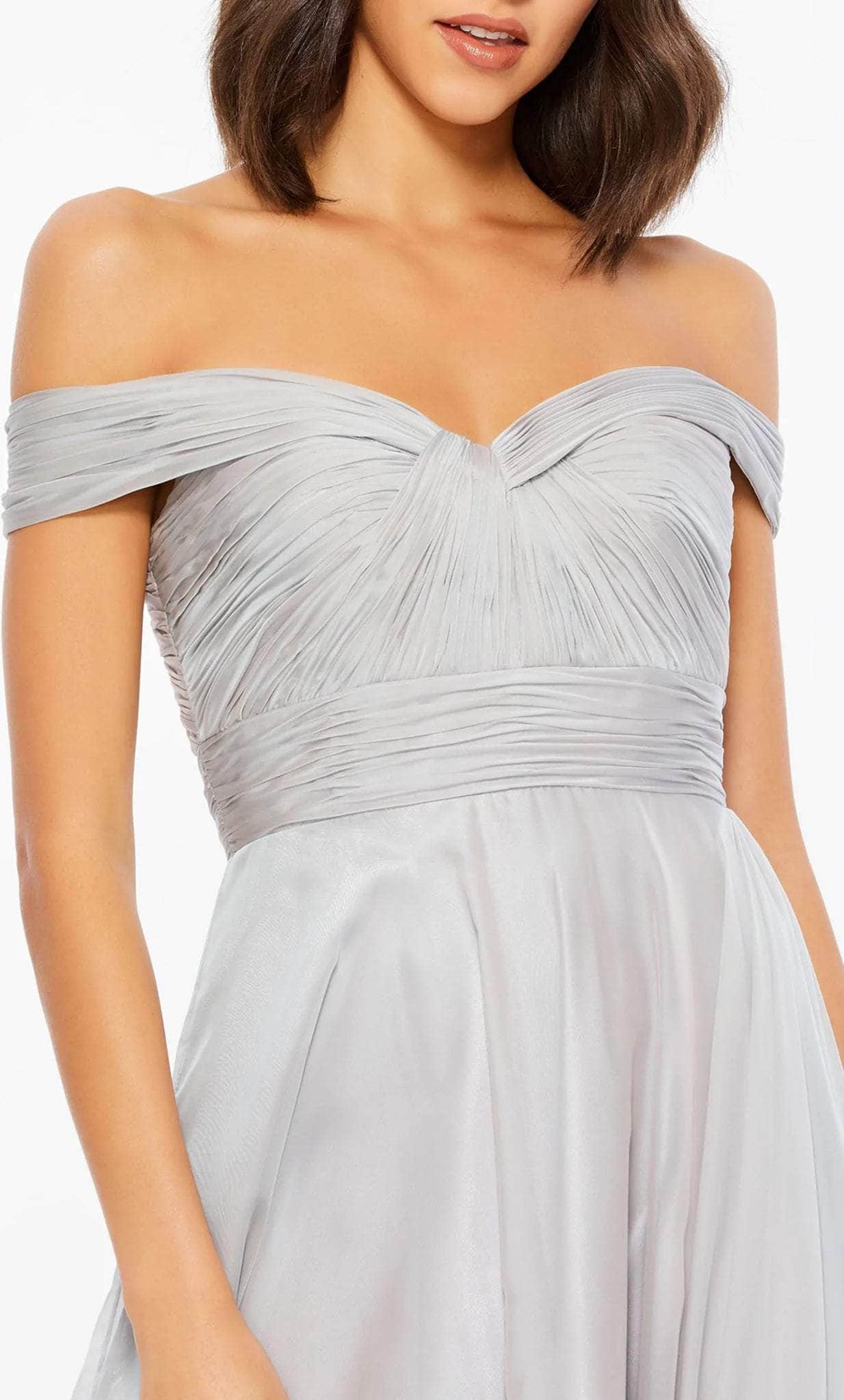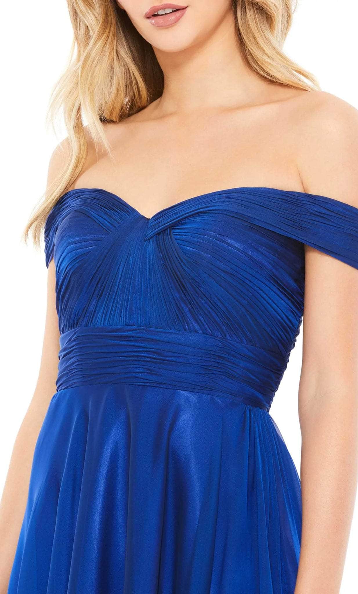 Embrace your inner sultry goddess in this captivating Mac Duggal 67485. The sweetheart neckline and fitted, pleated, off-shoulder bodice emphasize the feminine elegance of this winning piece. The mid-open back that perfectly matches with the styled bodice is secured with a center zipper closure and the A-line skirt accent with a thigh-high slit has a full-length hem. The next formal party you host would be the ideal setting for this Mac Duggal 67485 masterpiece! Models are wearing Pearl Grey and Sapphire colors.