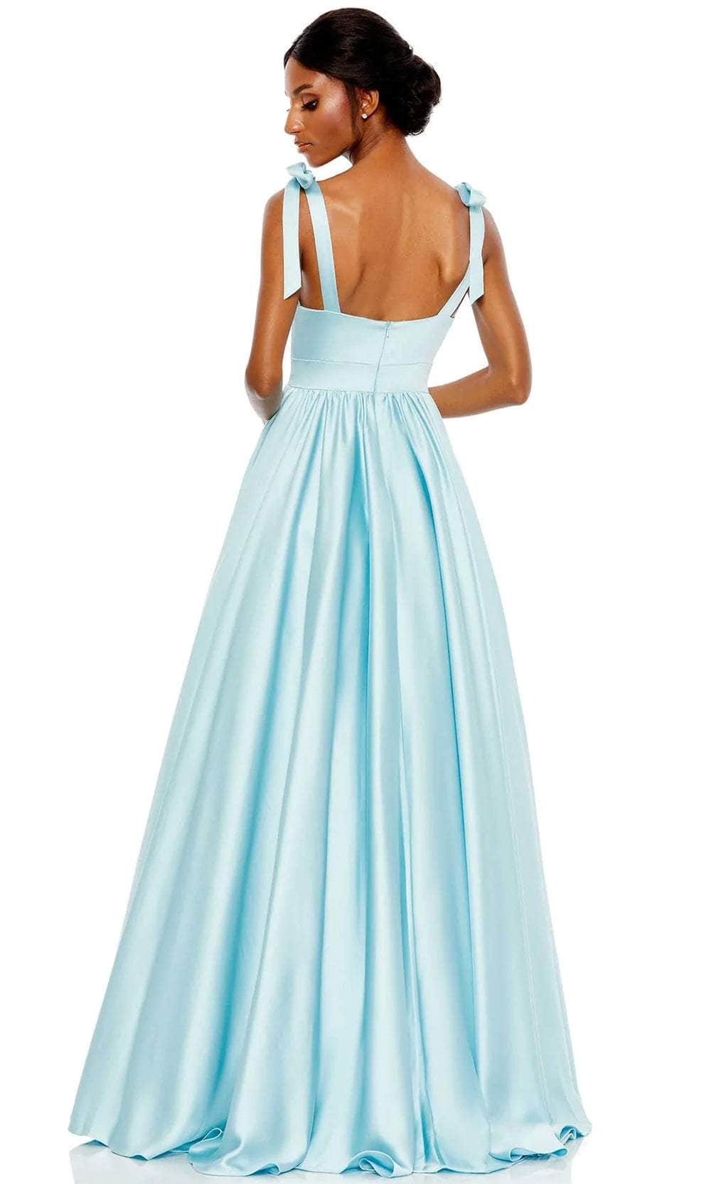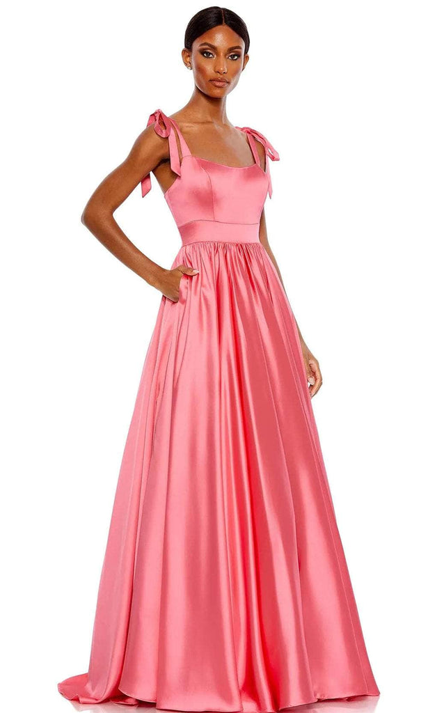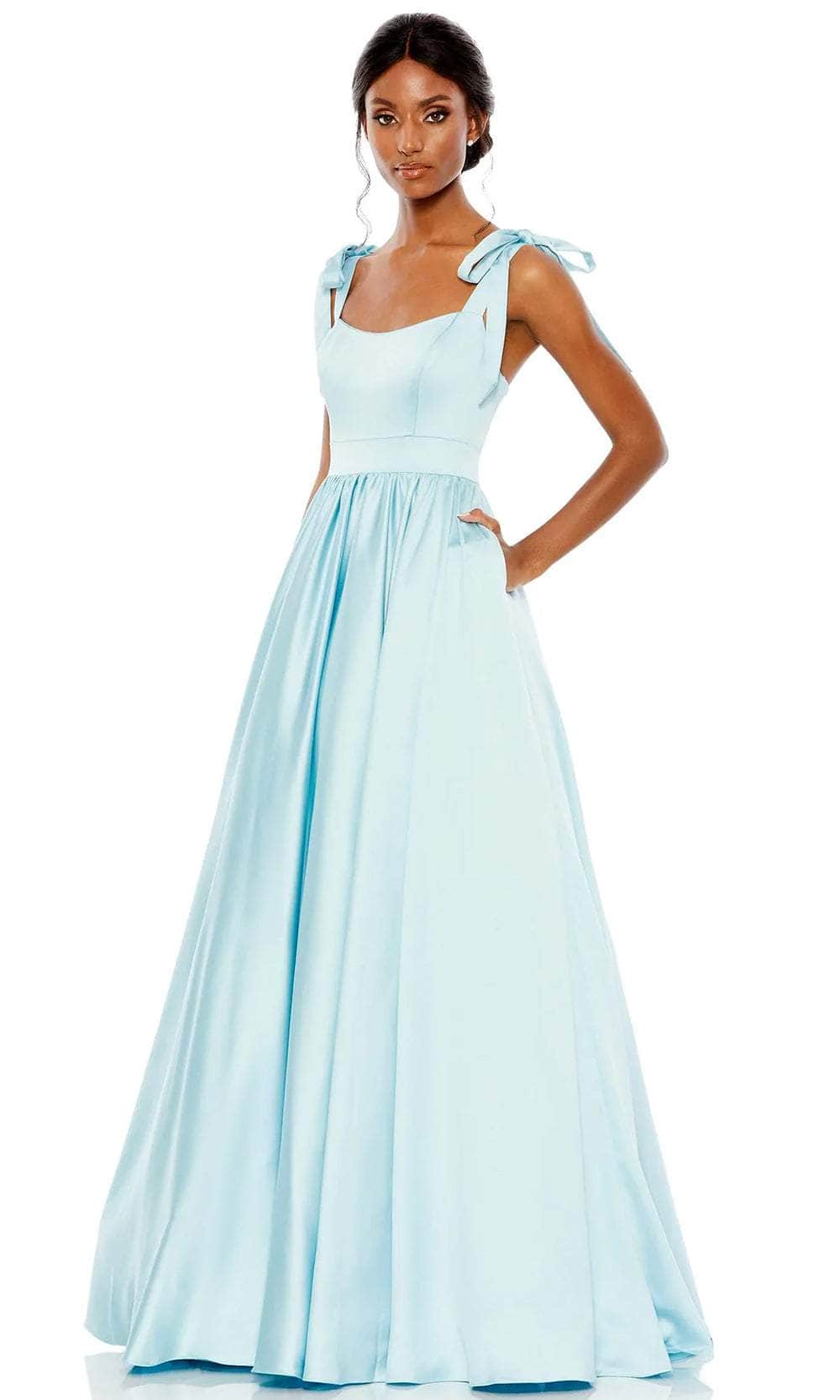 Prepare to be captivated by a picture of refinement from every angle with this Mac Duggal 67981 masterpiece. Tailored from satin fabric, this gorgeous gown is beautifully crafted with clean seams that will surely emphasize your curves. The fitted bodice is crowned with a scoop neckline and supported with wide tie straps that lead to a mid-open back secured with a back zipper closure, and the gathered skirt in an A-line silhouette has side pockets and ends with a sweep train. As you dance all night in this vintage Mac Duggal 67981 masterpiece, you'll exude refinement and poise. Models are wearing Coral and Powder Blue colors.