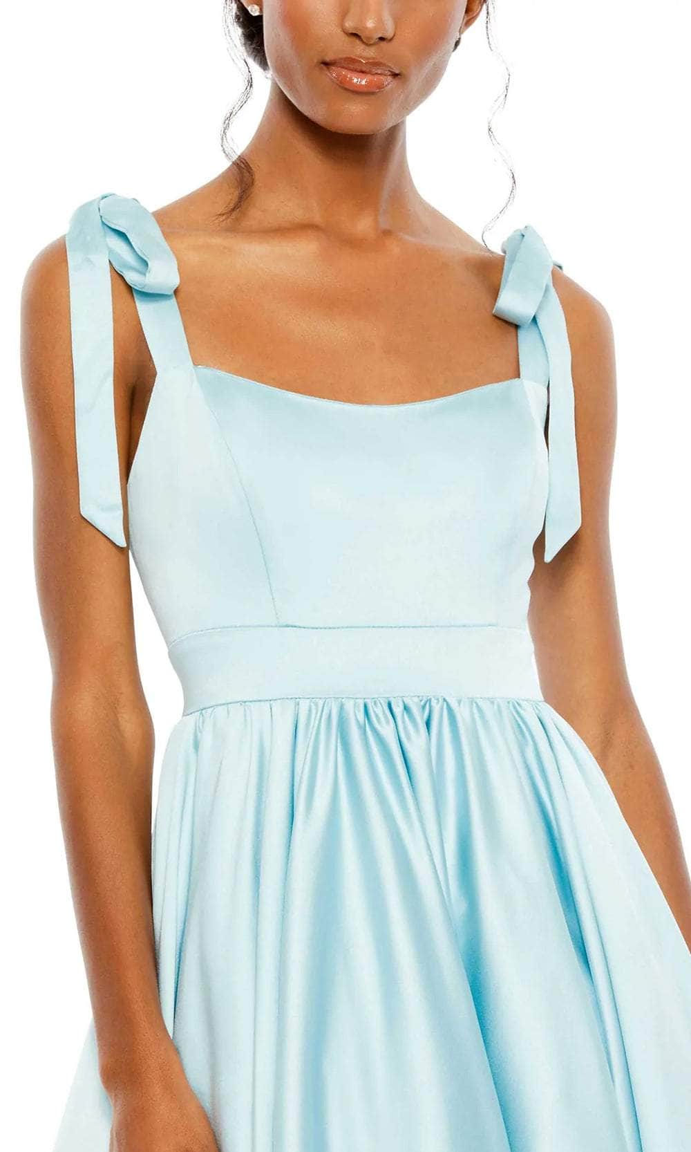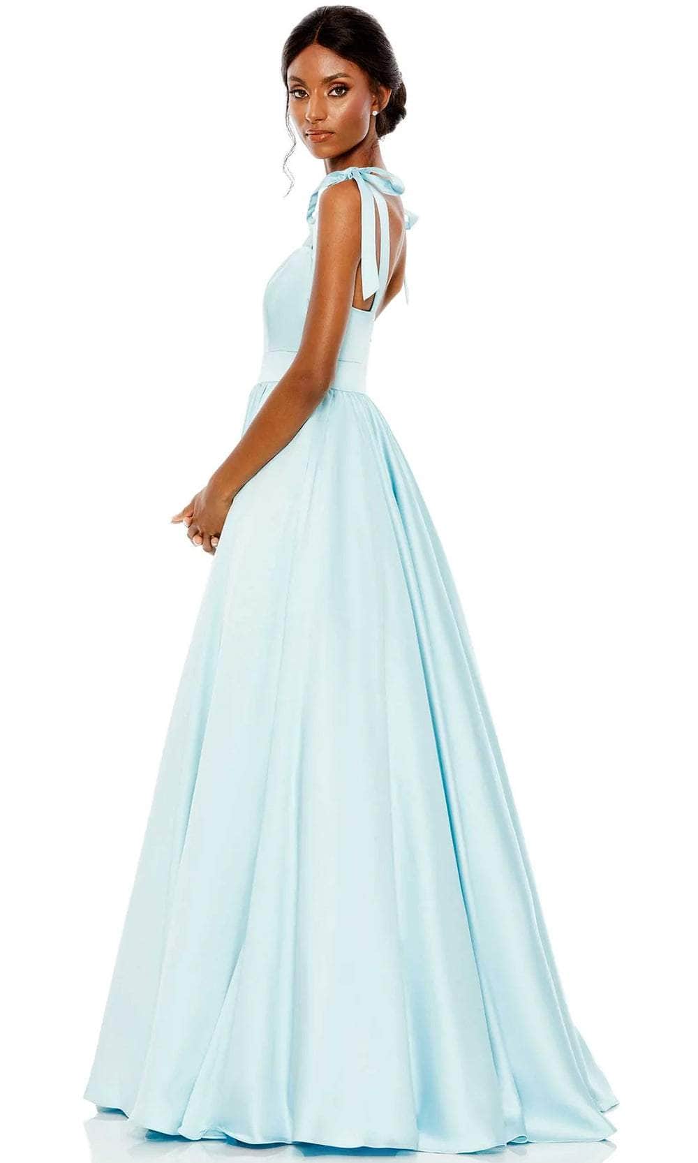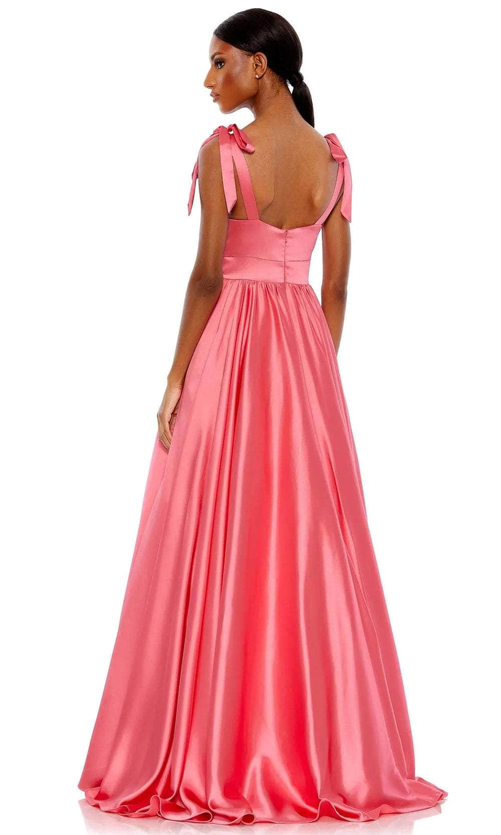 Prepare to be captivated by a picture of refinement from every angle with this Mac Duggal 67981 masterpiece. Tailored from satin fabric, this gorgeous gown is beautifully crafted with clean seams that will surely emphasize your curves. The fitted bodice is crowned with a scoop neckline and supported with wide tie straps that lead to a mid-open back secured with a back zipper closure, and the gathered skirt in an A-line silhouette has side pockets and ends with a sweep train. As you dance all night in this vintage Mac Duggal 67981 masterpiece, you'll exude refinement and poise. Models are wearing Coral and Powder Blue colors.
