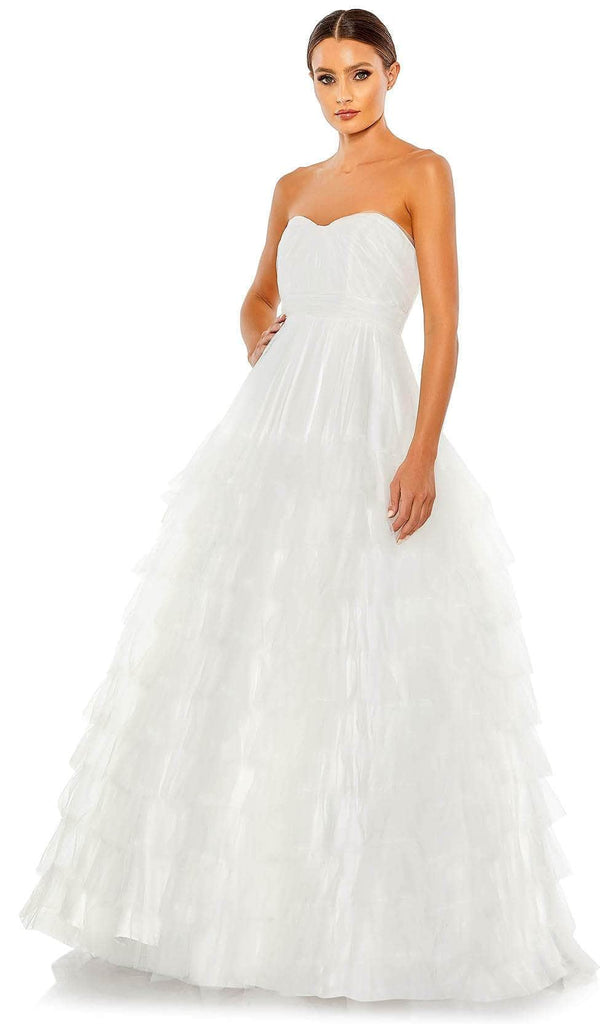 Look remarkably stunning in this elegant gown from Mac Duggal 67999. A subtle yet alluring look boasts this gorgeous strapless piece. Exquisite pleats were encapsulated on the fitted bodice as well as to the waistband. A mid-open back with zipper closure creates a tempting look while the sheer layered skirt flows down to a full-length hem with ruffle details. Fancily grace every party with elegance and beauty in this stunning Mac Duggal masterpiece. Models are wearing Red and White colors.