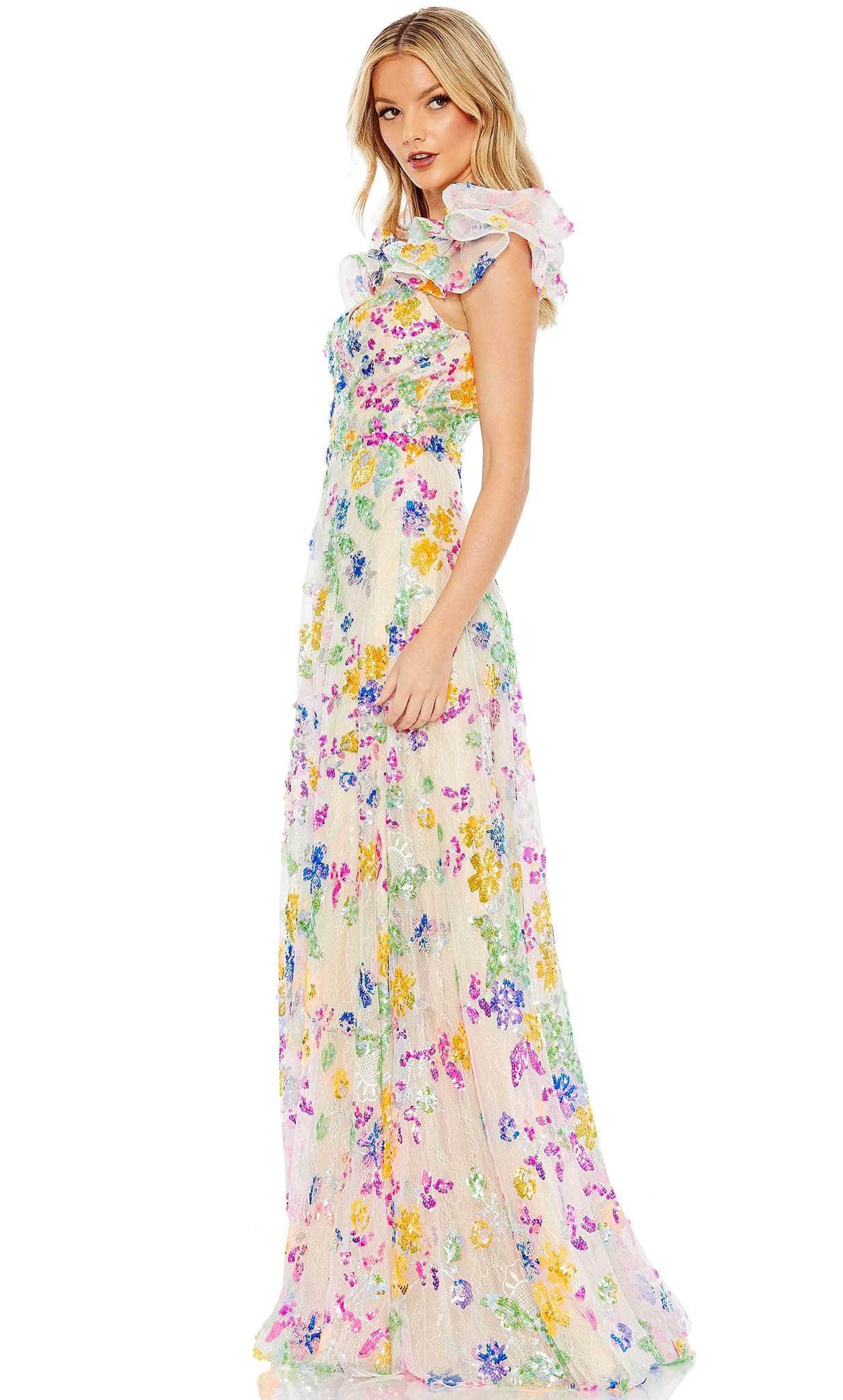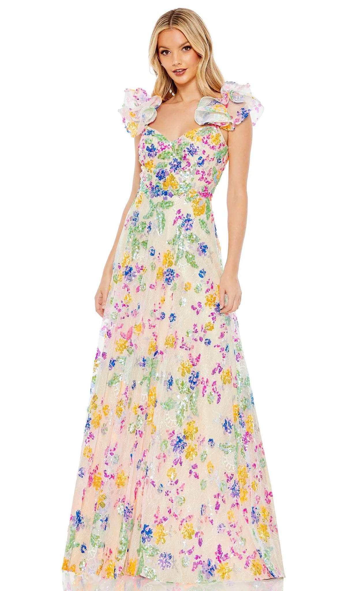 Expect to be turning heads as you walk into your special event wearing this creatively romantic piece by Mac Duggal 68068. Add a sparkle of color to your aura with its highly remarkle ruffled cap sleeves, perfectly matched with its sweetheart-necklined bodice and A-silhouette skirt. Look amazing and refreshing as well with its floral embroideries that adorn the totality of this dress. This floor-reaching dress, segmented with normal waistline is sewn with back zipper for convenient closure. This Mac Duggal 68068 is sure to create a striking look that is sure to make anyone remember your grand entrance. Model is wearing White Multi color.