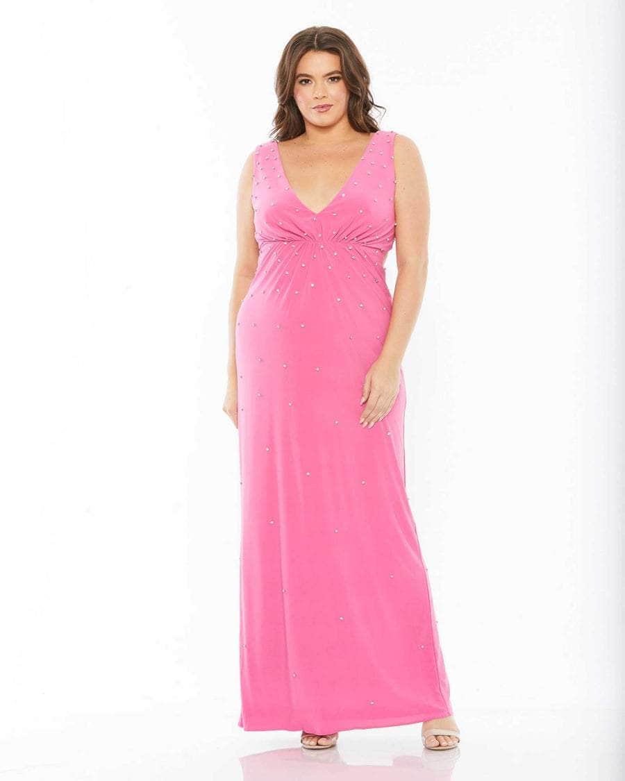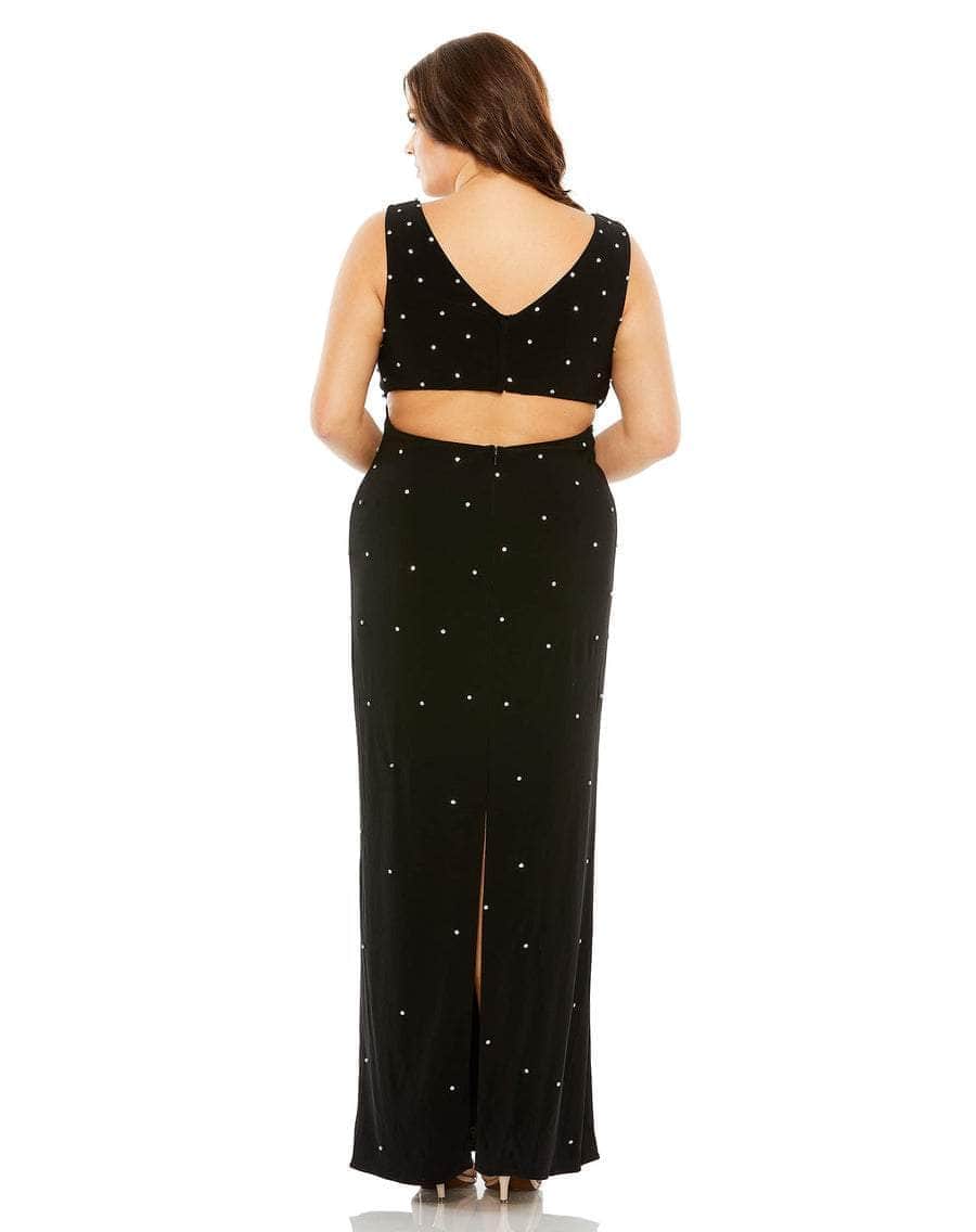Flatter your figure with this eccentric design by Mac Duggal 68353. Made from high-quality jersey fabric, this dress features an all-over embellishment of rhinestones, adding a touch of glamour. The sleeveless bodice of the dress boasts a plunging V-neckline that exudes confidence, while the cut-out detailing at the back adds a hint of playfulness. The floor-length skirt creates a elegant column silhouette, with a low middle slit at the back that adds movement and grace to the dress. This Mac Duggal 68353 is sure to make a daring statement in that special affair! Models are wearing Black and Hot Pink colors.