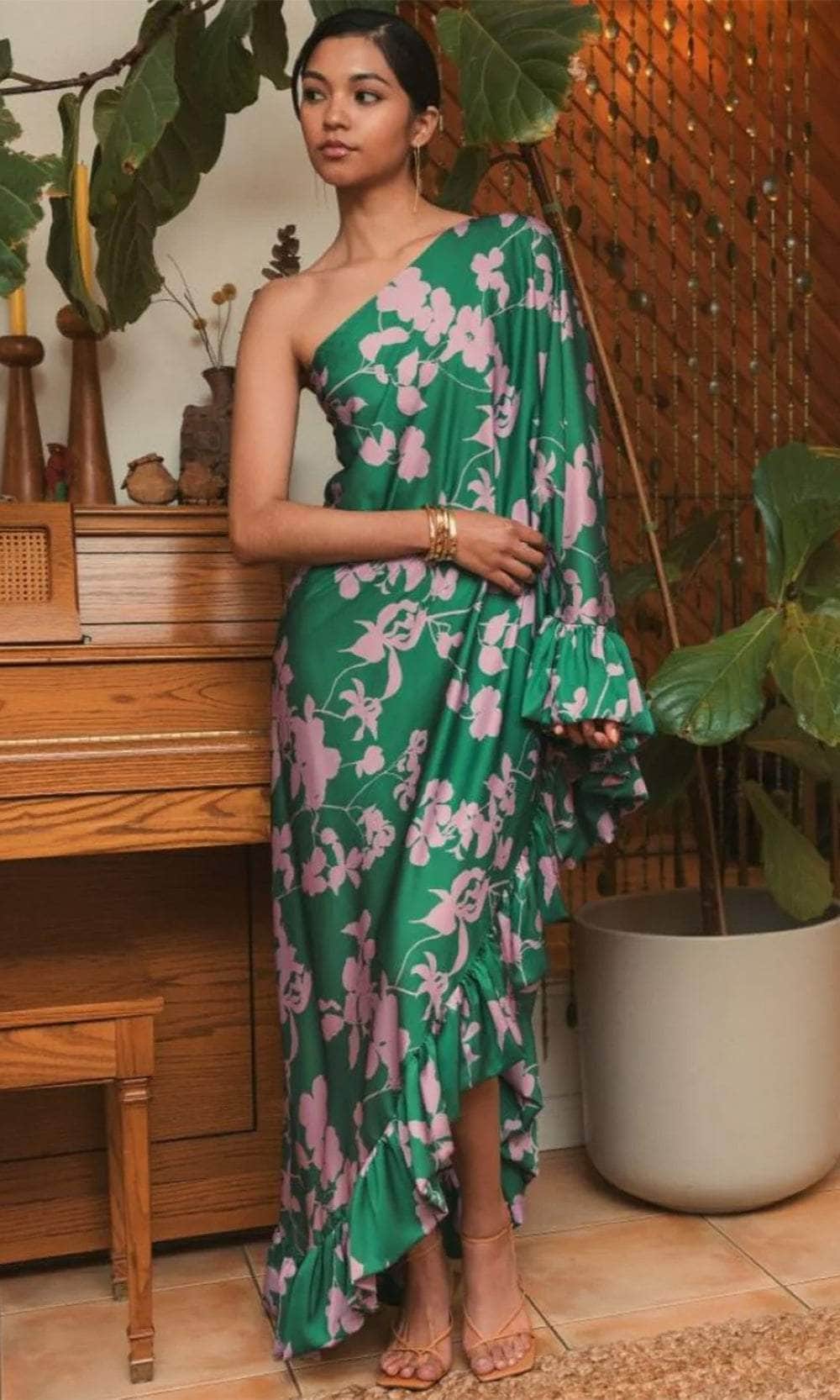 | Details: | One-Shoulder, Ruffle Detail, Printed |