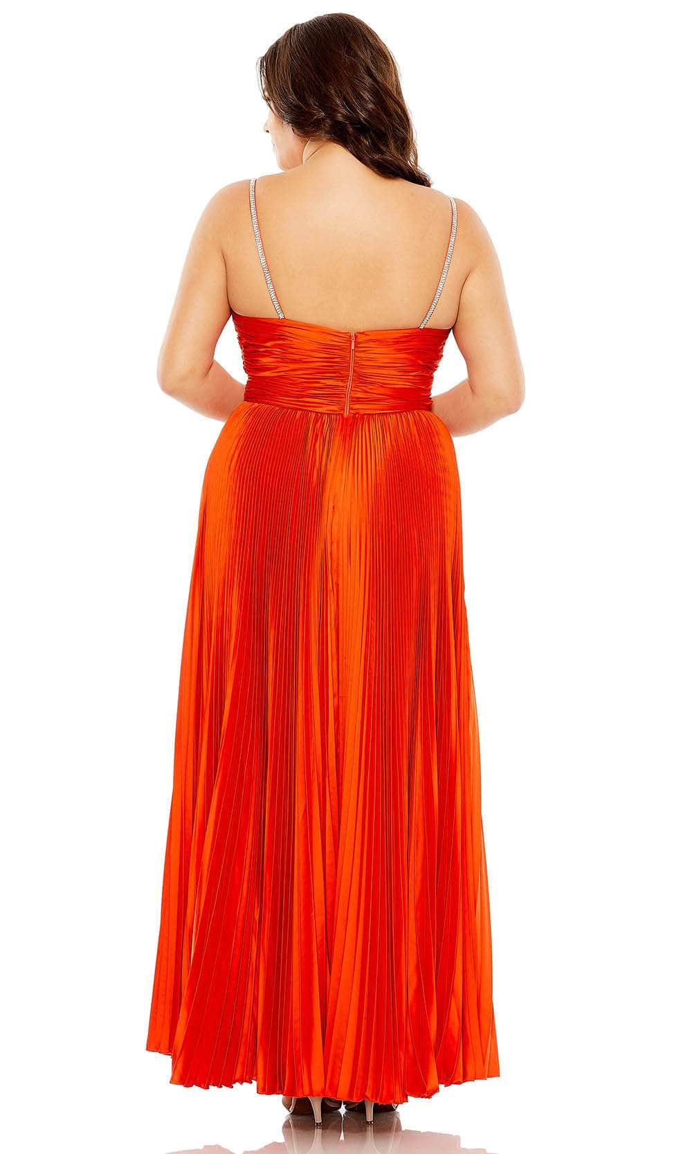 Look ravishing in this Mac Duggal 77008 pleated gown. Crafted from luxurious pleated satin, this sleeveless ensemble features a sweetheart neckline, rhinestone spaghetti straps, and a high slit that adds a hint of glamour. The mid open back and A-line silhouette complete the look, making it perfect for any special occasion. Be the belle of the ball with this stunning piece. Models are wearing the Black, and Cayenne colors.