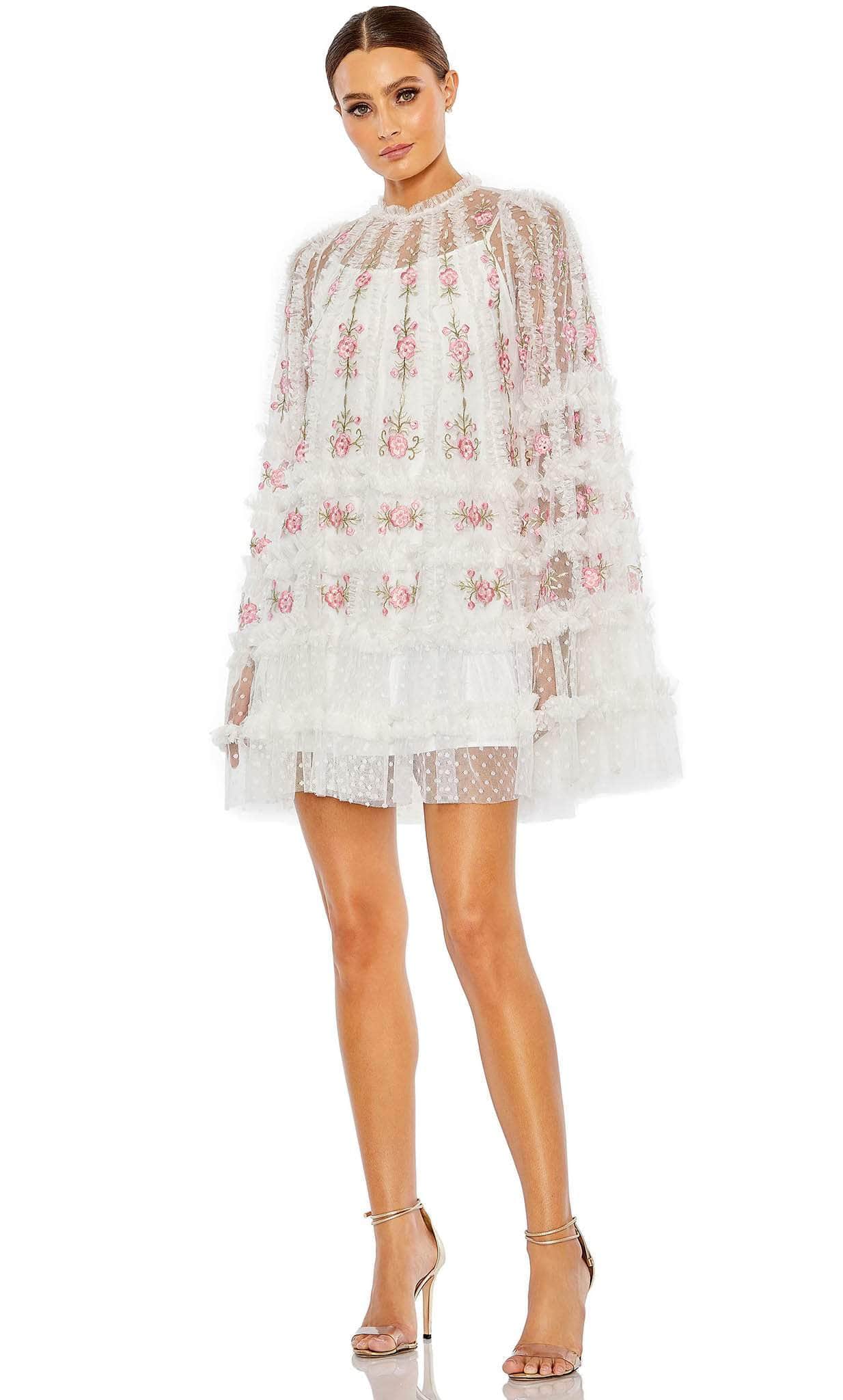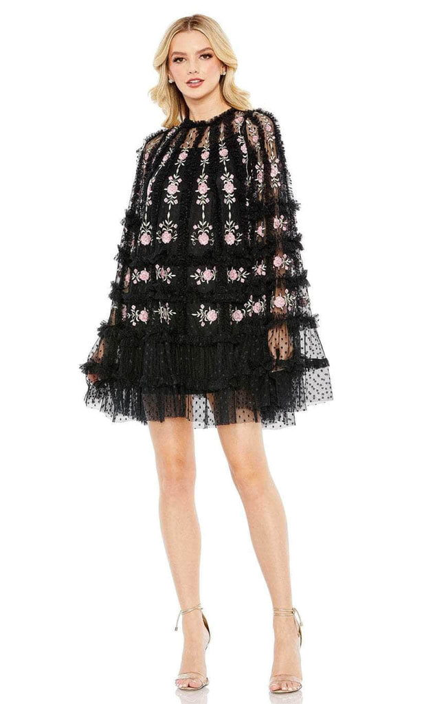 On your next special event be prepare to enter the room as everyone will be amazed at you in this Mac Duggal 8031 masterpiece. A sleeveless dress that is classy and unique as it has an overlay cape that has a floral design. This lovely piece is a head-turner as it flaunts a mid-thigh length A-line silhouette. Wearing this amazing creation from Mac Duggal 8026 you will ooze feminine elegance and sophistication. Model is wearing Black Multi, and White Multi color.